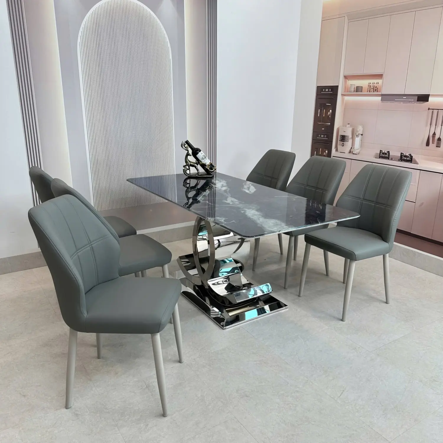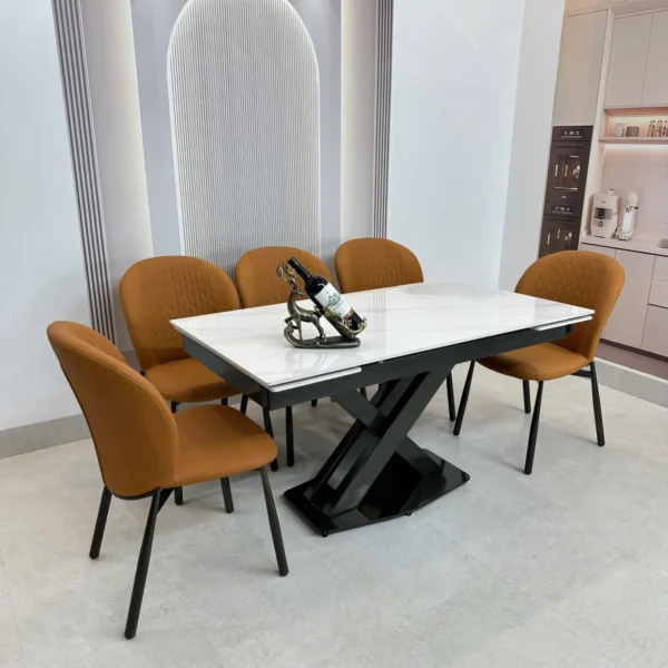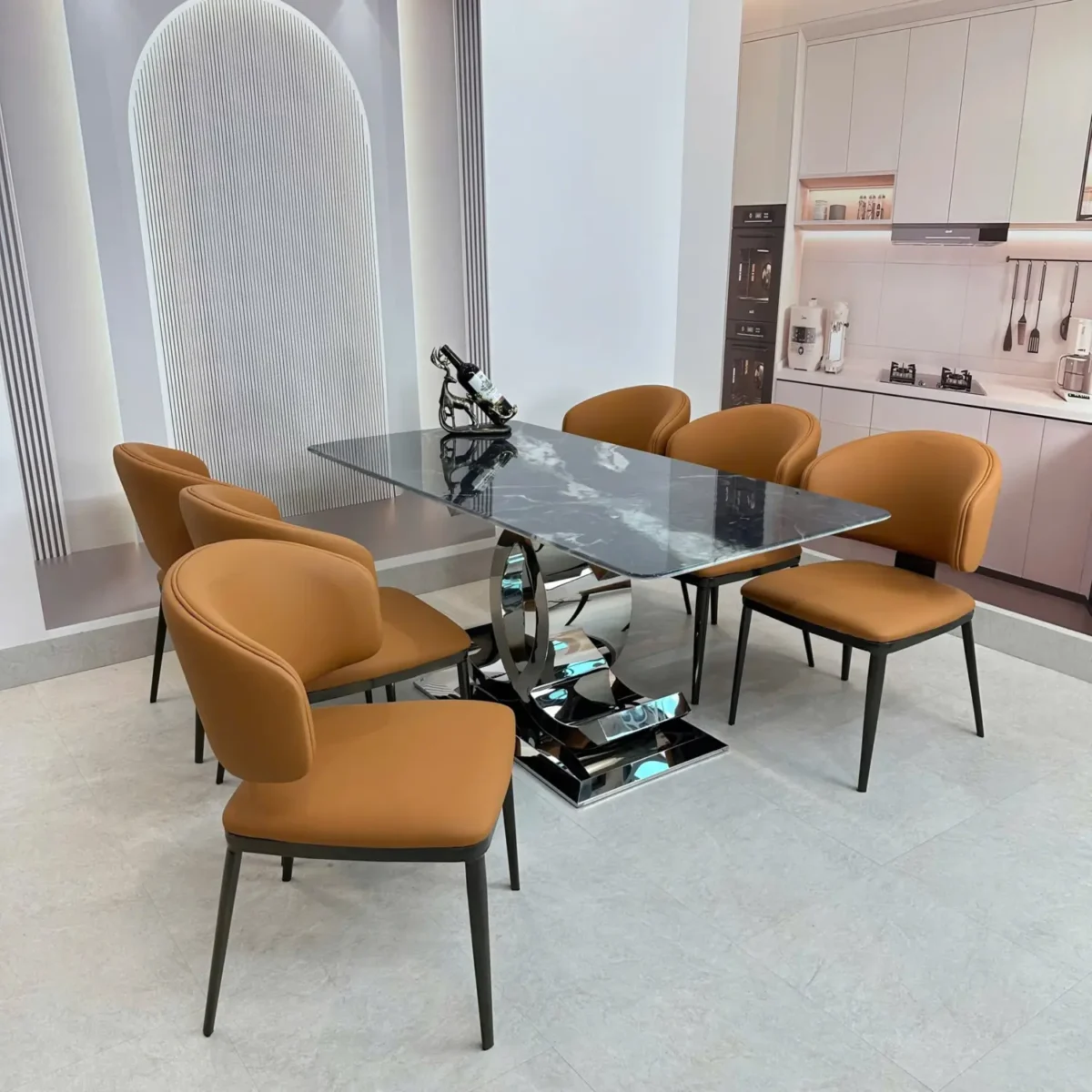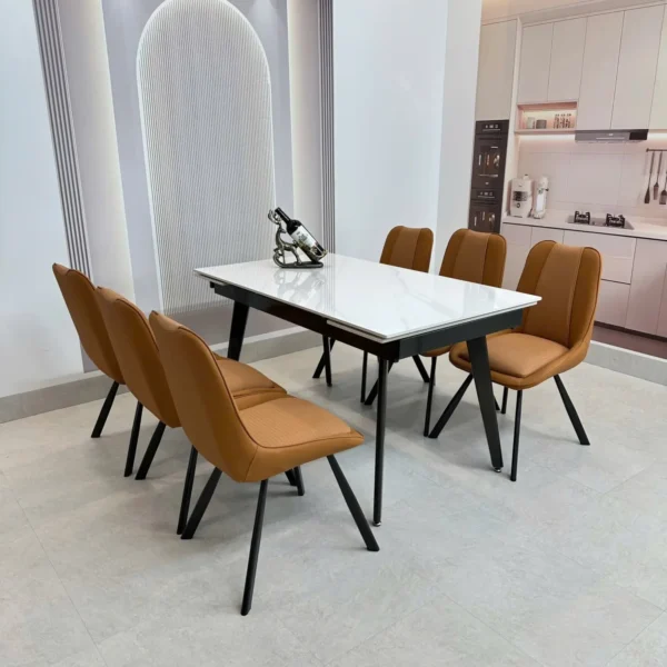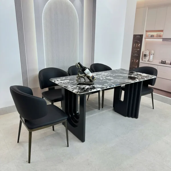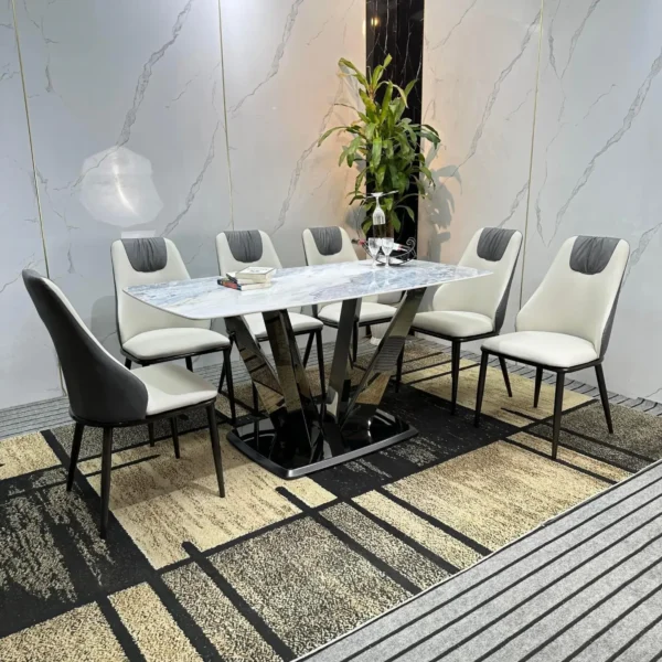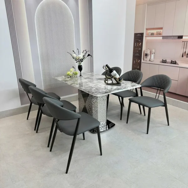 Bàn Ăn Mặt Đá 6 Ghế Chân Chữ C Đối Hiện Đại – Sang Trọng & Ấn Tượng