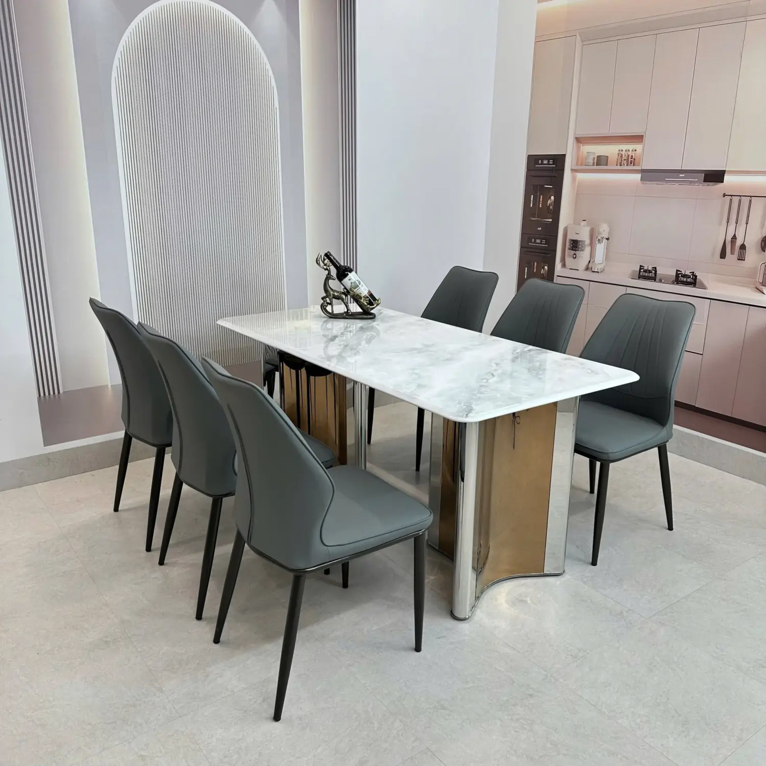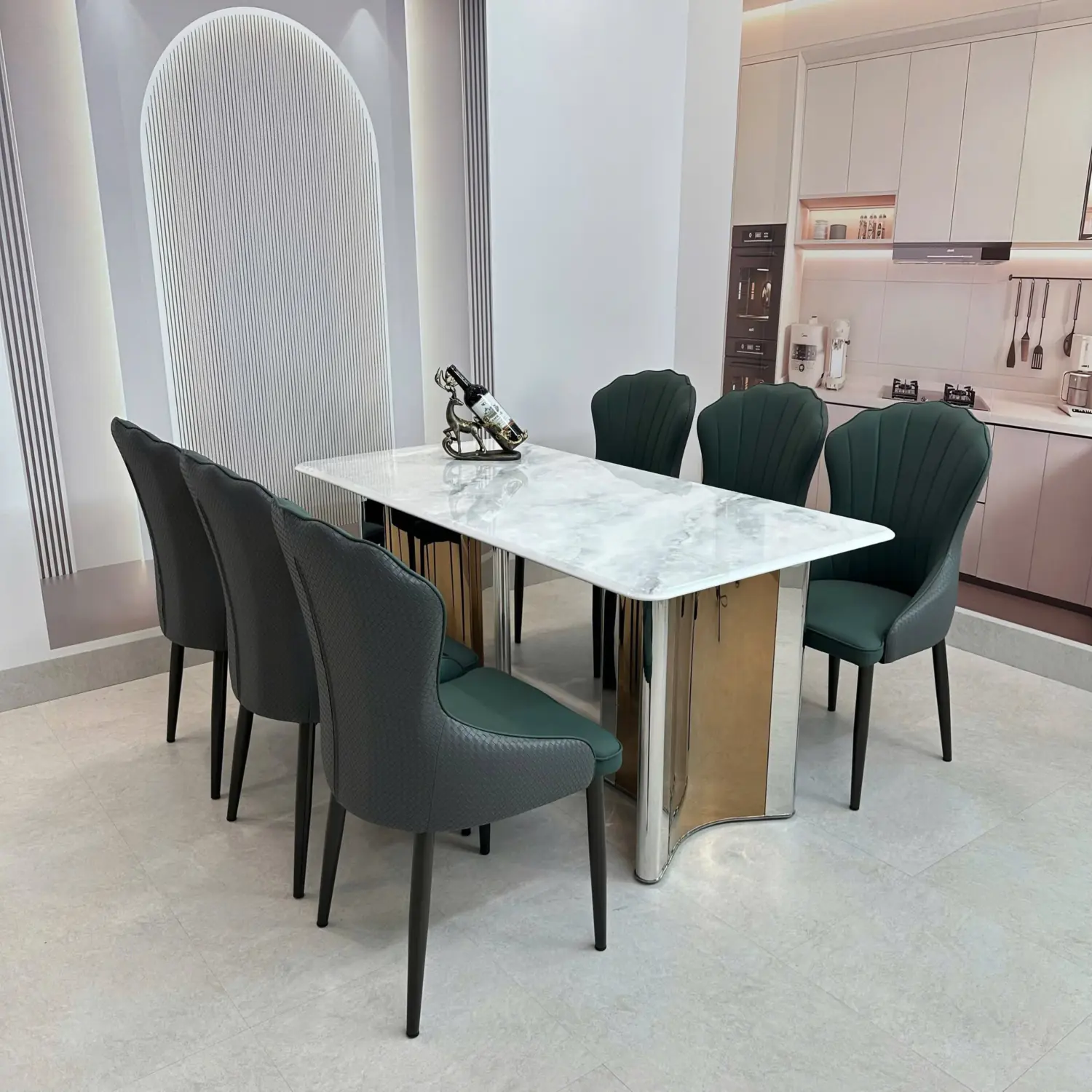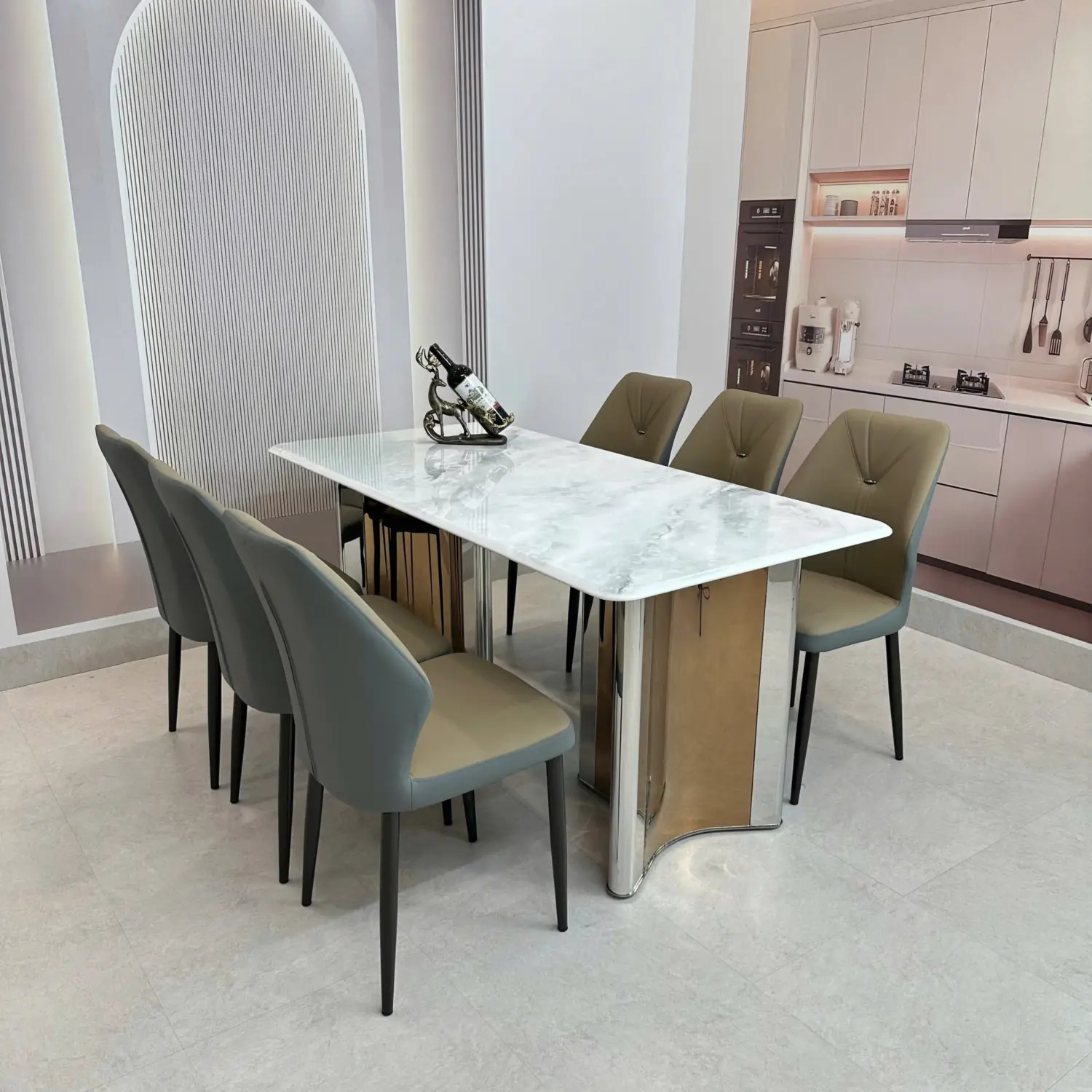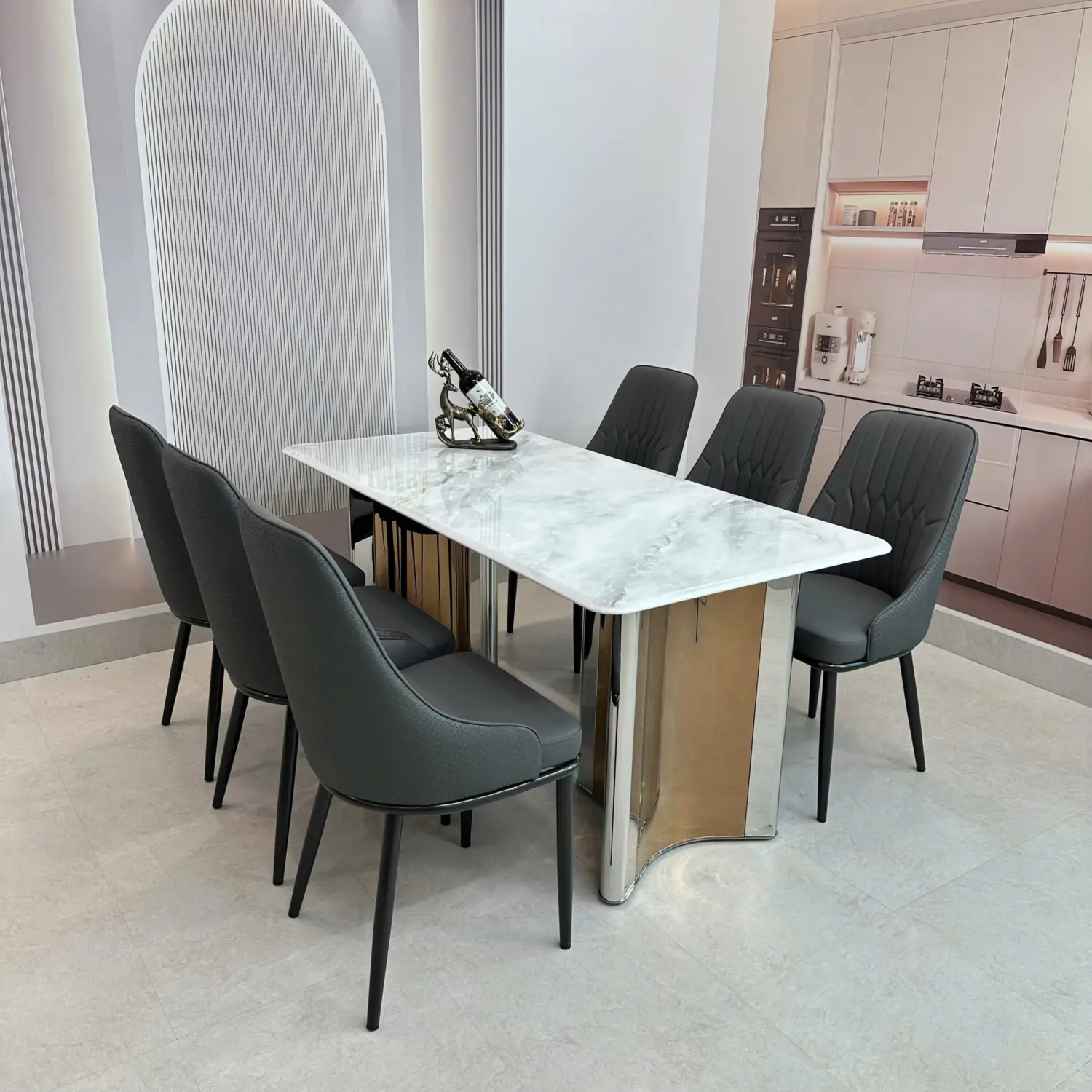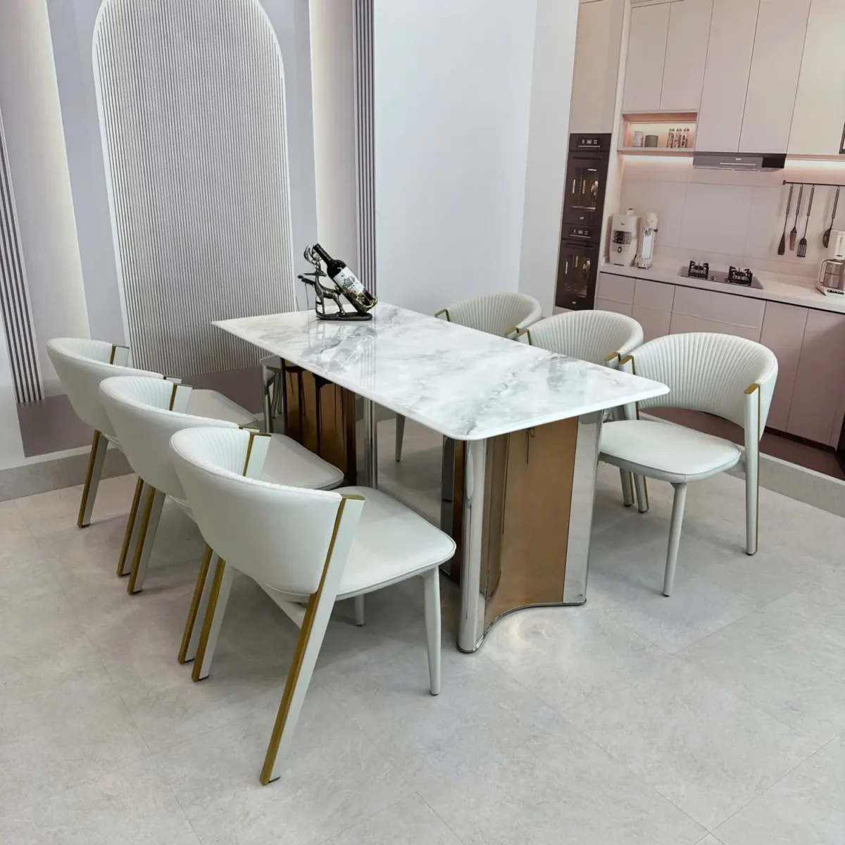 Bàn Ăn Mặt Đá 6 Ghế Chân Inox Hiện Đại – Thanh Lịch & Sang Trọng
