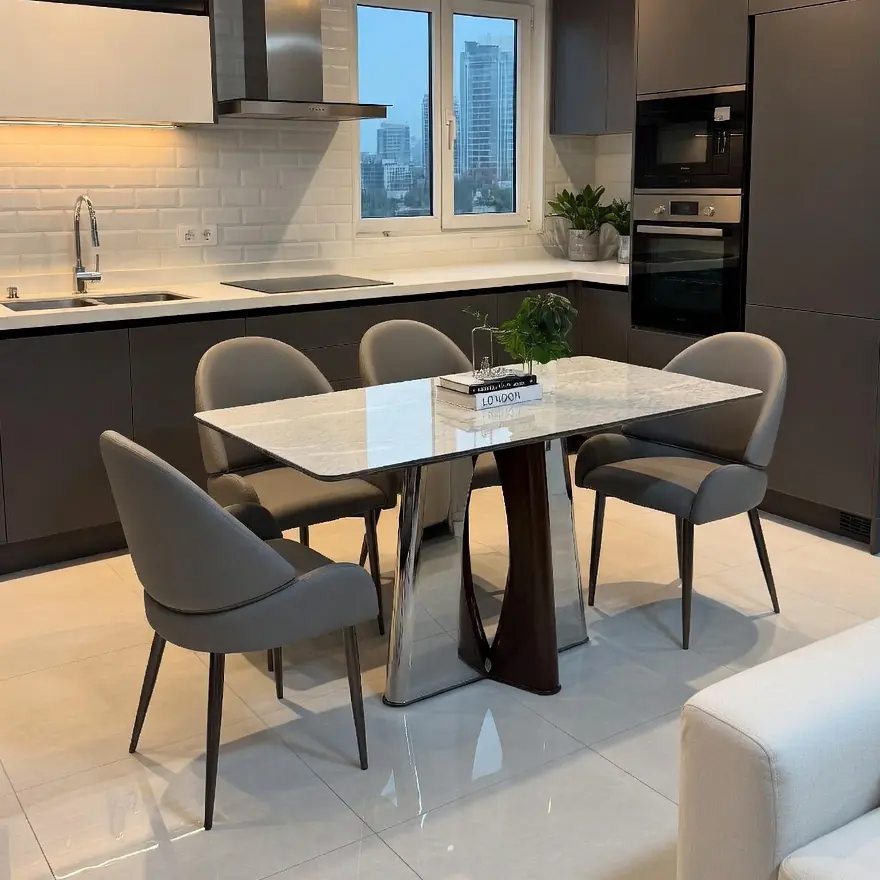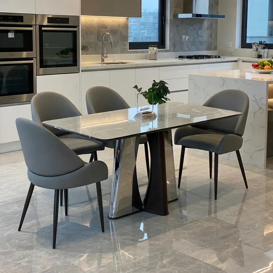 Bàn Ăn Mặt Đá Vi Tinh Thể Chân Inox – Thiết Kế Thông Minh Cho Không Gian Hiện Đại