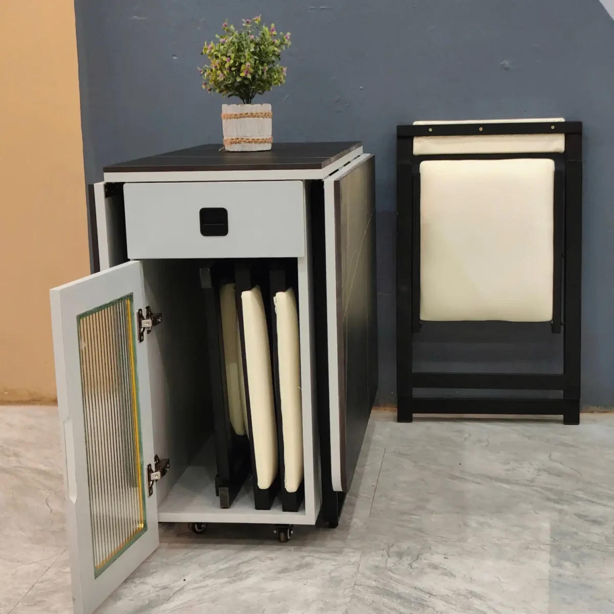 Bàn Ăn Thông Minh Gấp Gọn – Mặt Đá Ceramic Nhẹ Bền, Thiết Kế Hiện Đại Cho Căn Hộ Nhỏ