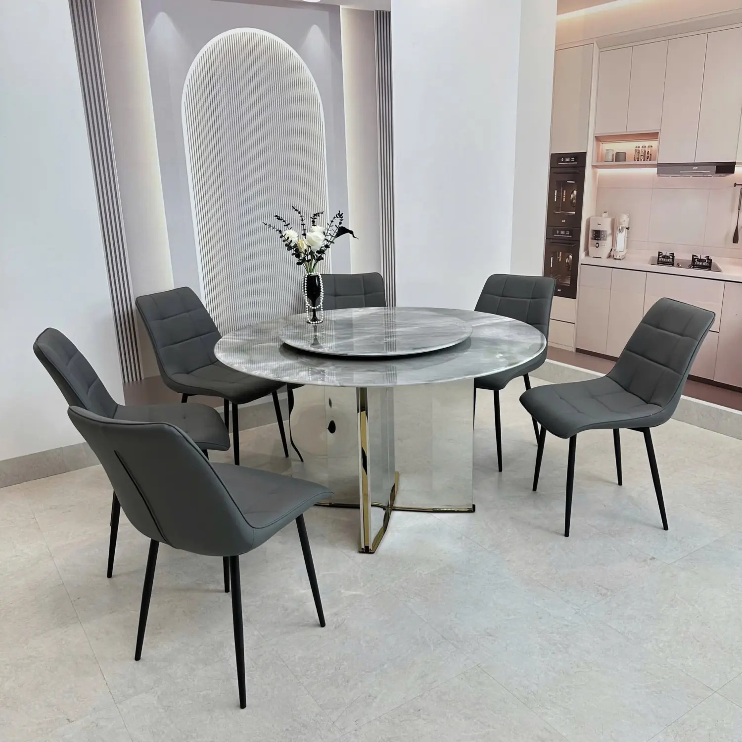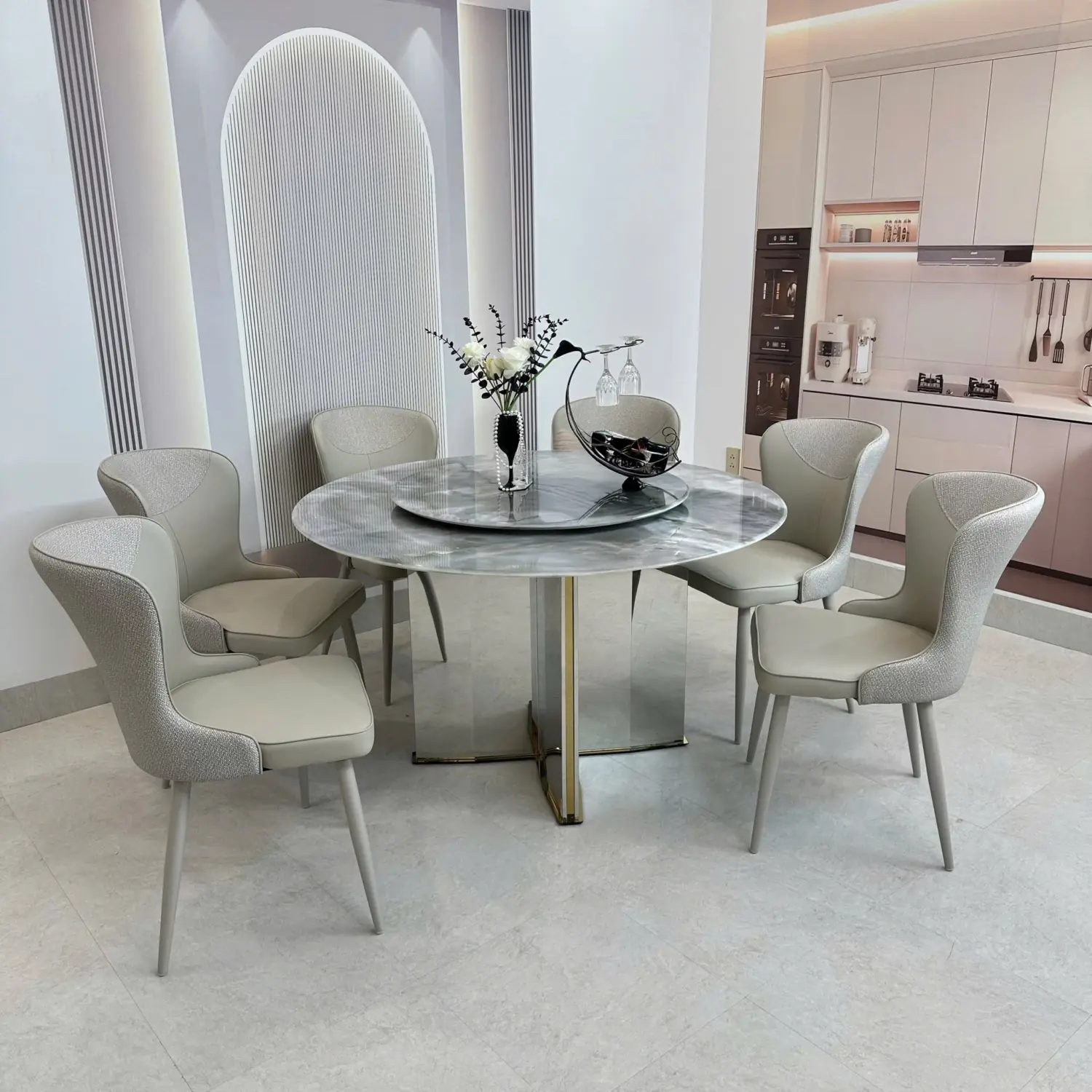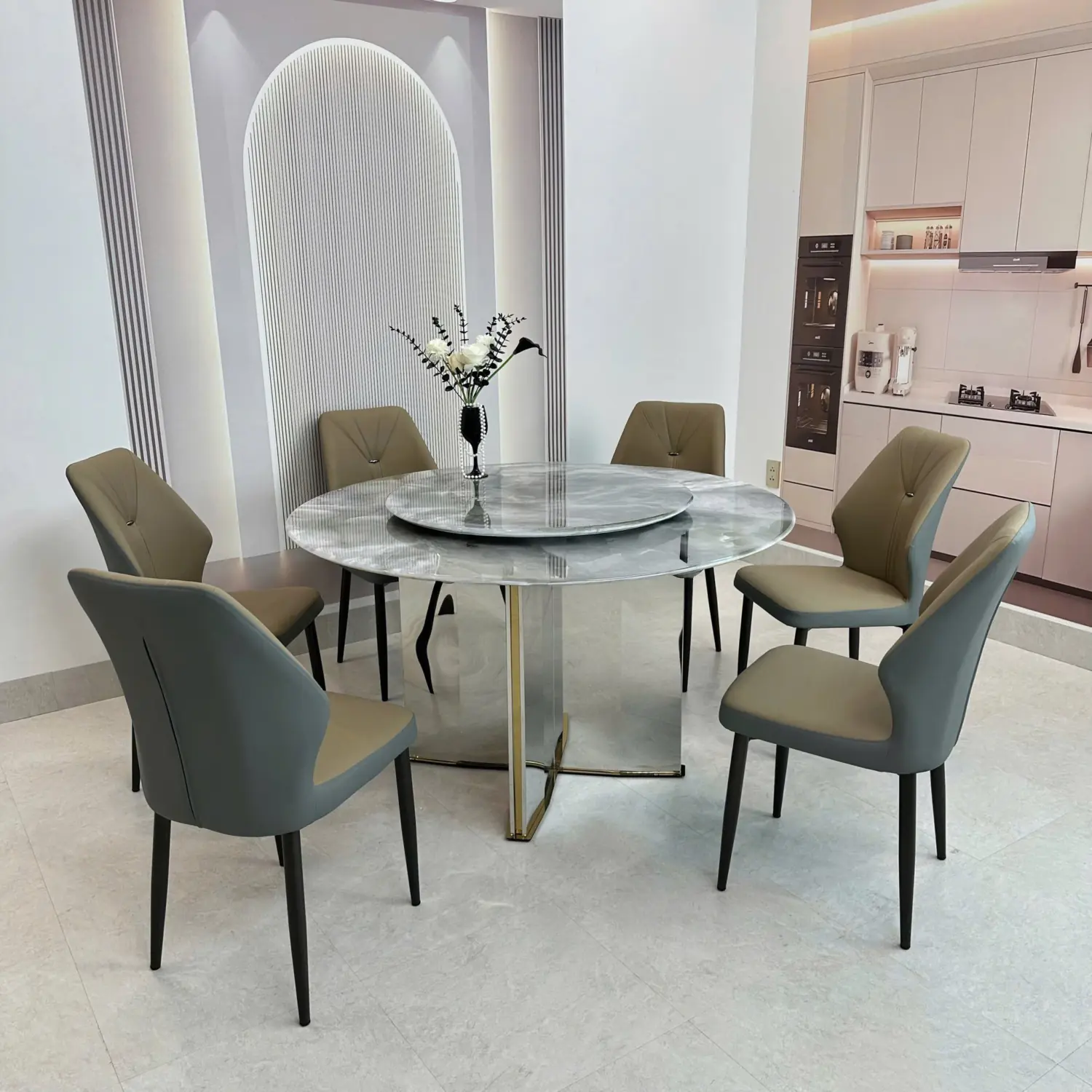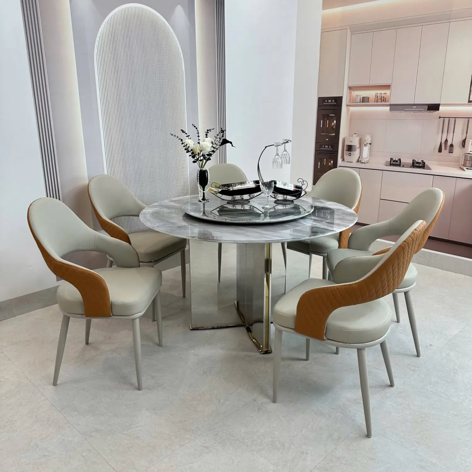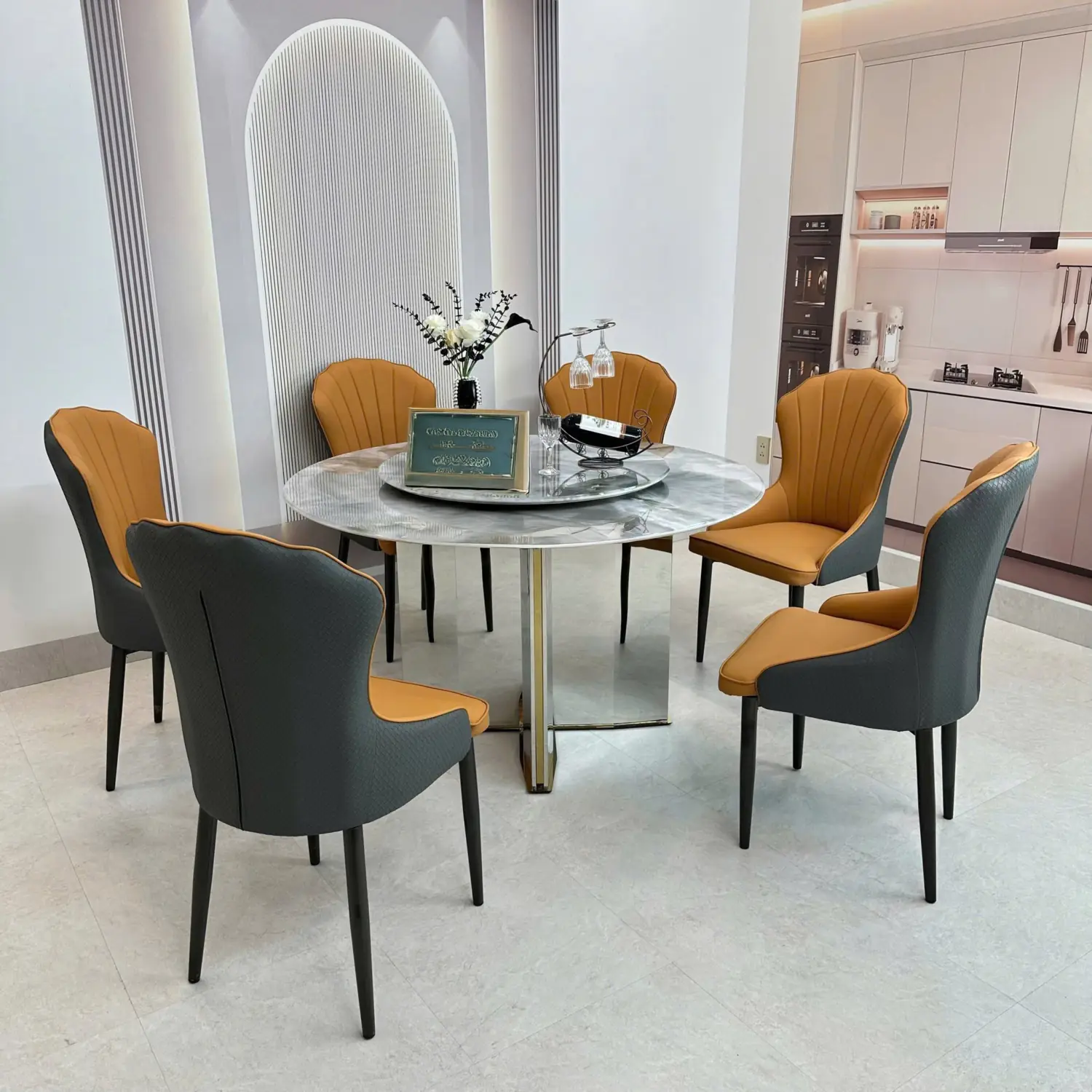 Ghế bọc da cao cấp êm ái, gam màu phối tinh tế, tôn lên vẻ sang trọng cho phòng ăn.