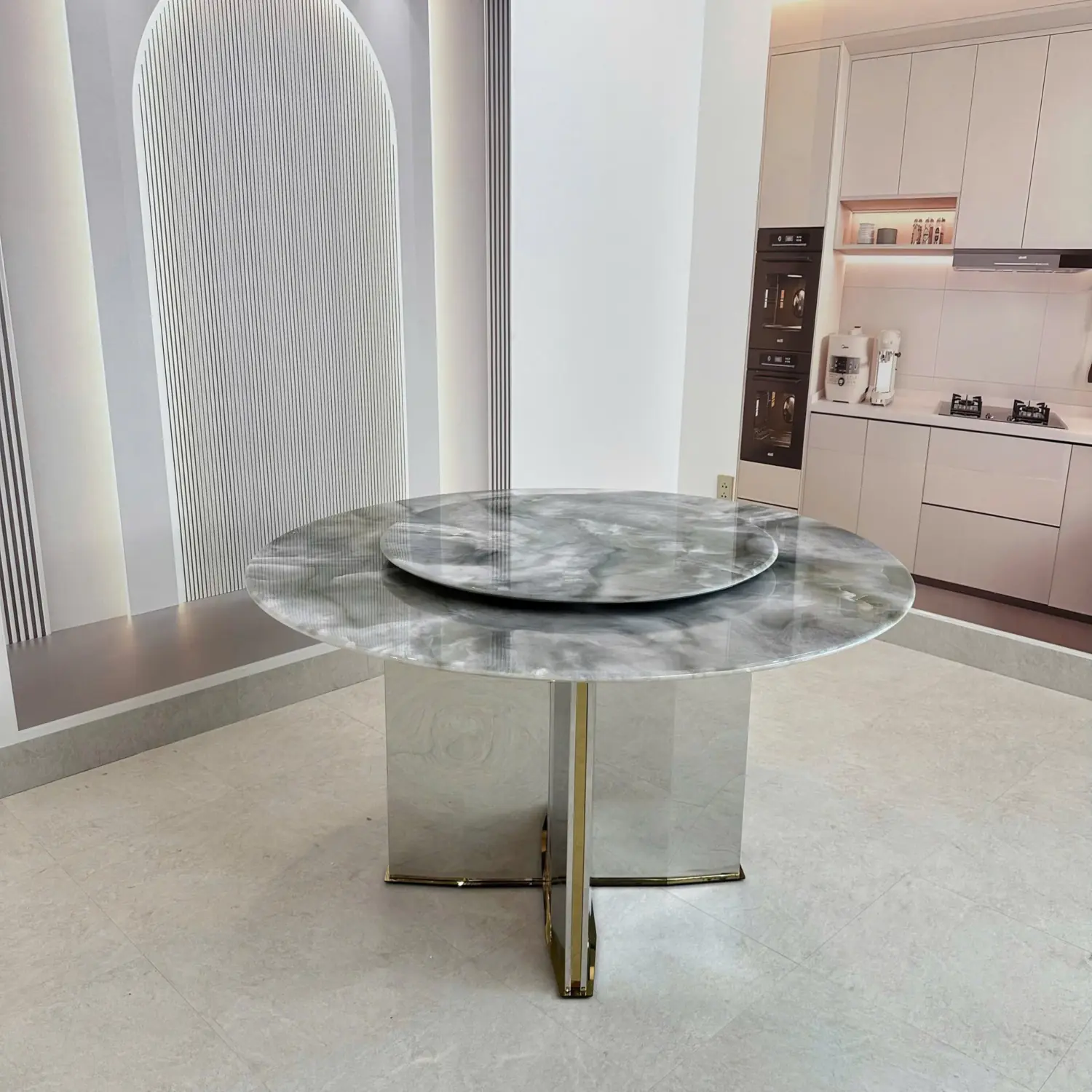 Bàn Ăn Tròn Mặt Đá Xoay 2 Tầng Cao Cấp – Thiết Kế Hiện Đại & Sang Trọng