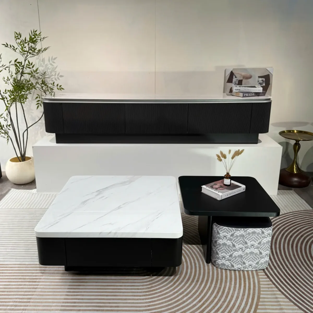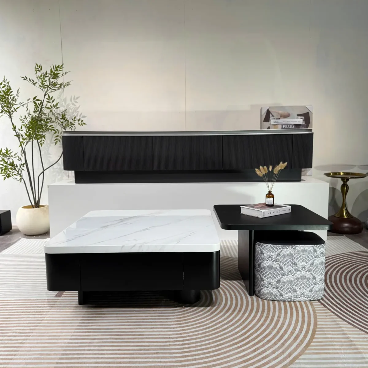 Sự kết hợp tinh tế giữa hai gam màu đen – trắng giúp mẫu bàn trà này dễ dàng phối cùng nhiều dòng sofa và nội thất phòng khách khác nhau.