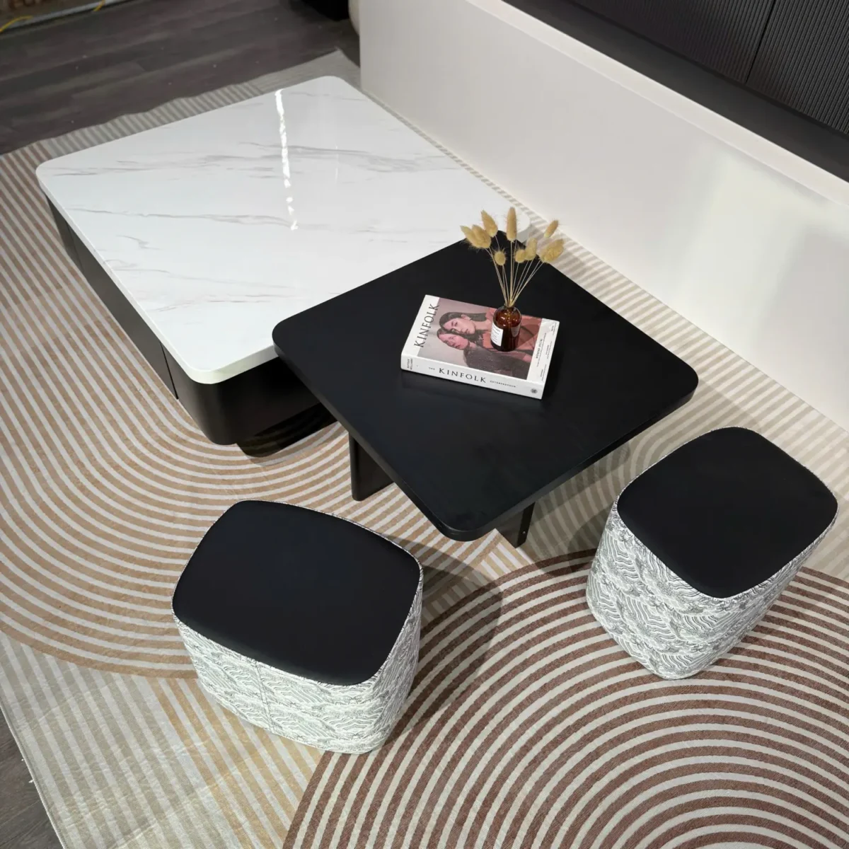 Bàn Trà Đôi Mặt Đá Vuông Phối Đen Trắng Cao Cấp – SP14326