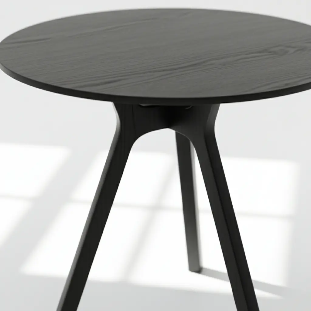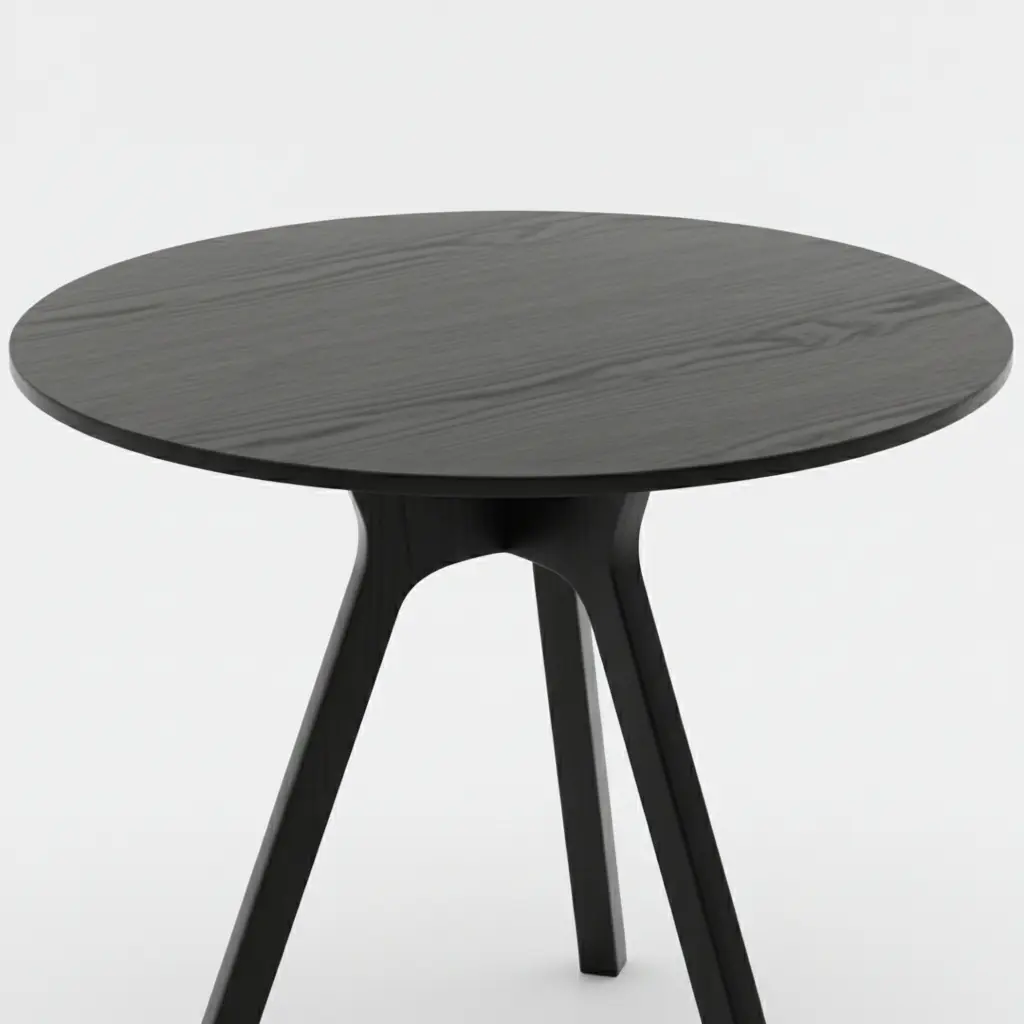 Chất liệu chính là gỗ tần bì tự nhiên cao cấp – loại gỗ nổi tiếng với vân gỗ mịn màng, độ cứng chắc vượt trội, chịu lực tốt và bền bỉ theo thời gian. Bề mặt được sơn đen mờ hoàn thiện cao cấp, tạo vẻ đẹp mạnh mẽ, tinh tế, chống xước, chống ẩm hiệu quả, phù hợp khí hậu Việt Nam. Mặt bàn đường kính 54 cm nhẵn bóng, giữ nguyên nét đẹp tự nhiên của gỗ – càng sử dụng càng lên màu đen quyến rũ, bóng mịn.