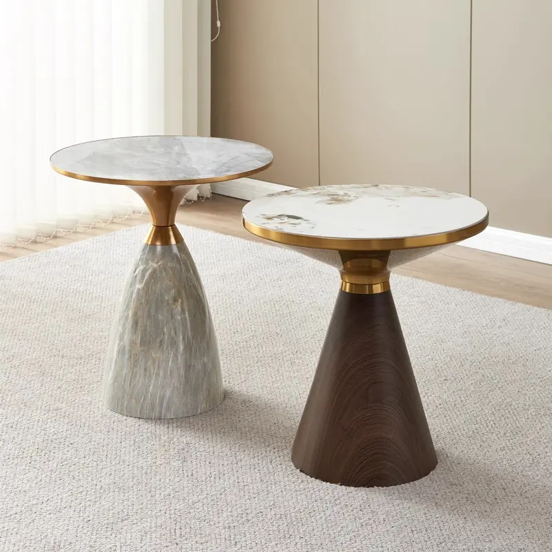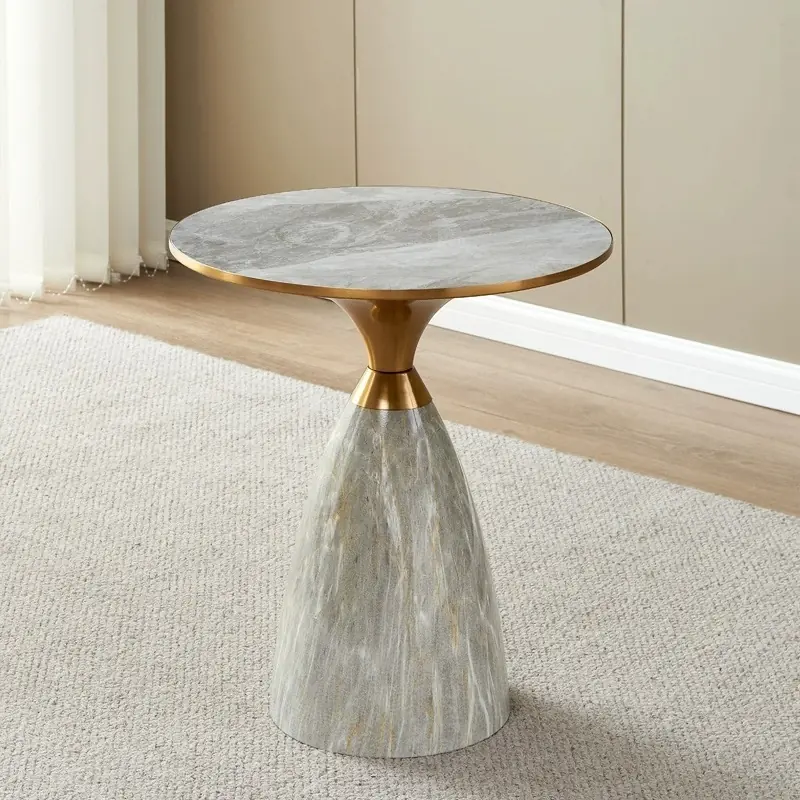 Bàn Trà Góc Sofa Mặt Đá Cao Cấp Chân Kim Loại – Nhỏ Gọn, Sang Trọng Cho Phòng Khách Hiện Đại