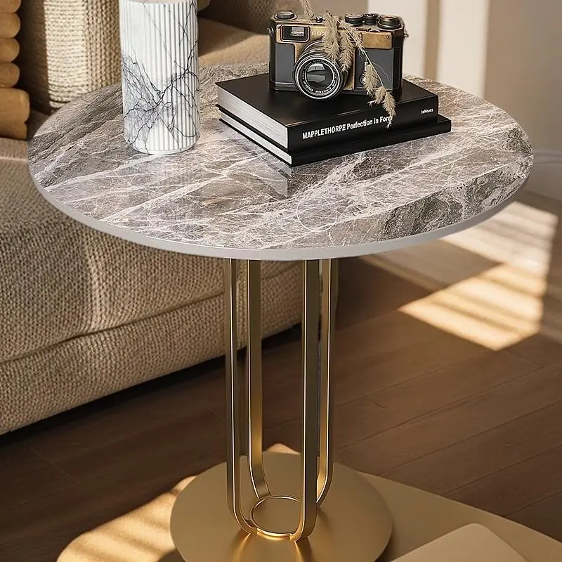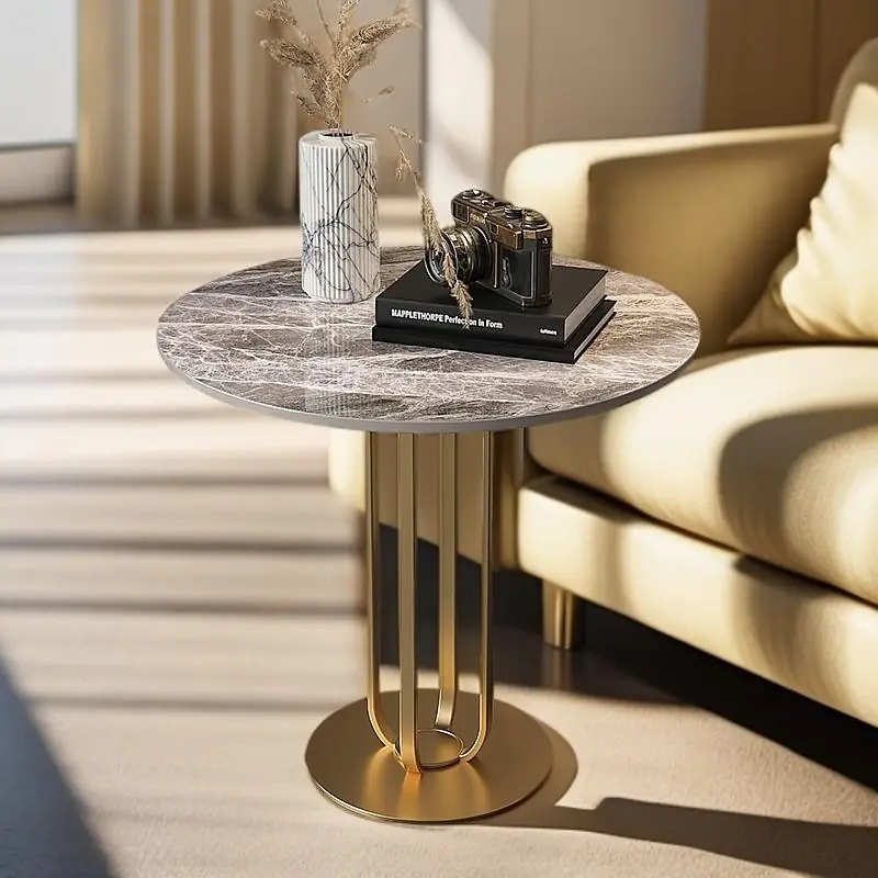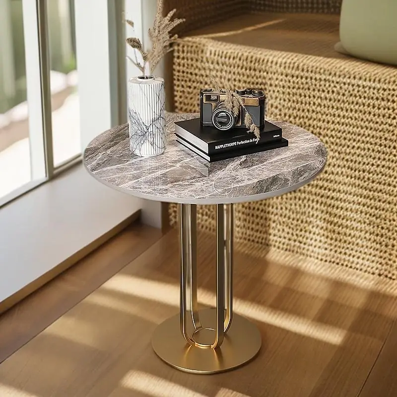 Bàn Trà Góc Sofa Mặt Đá Chân Mạ Titan – Phong Cách Hiện Đại, Tối Giản & Sang Trọng