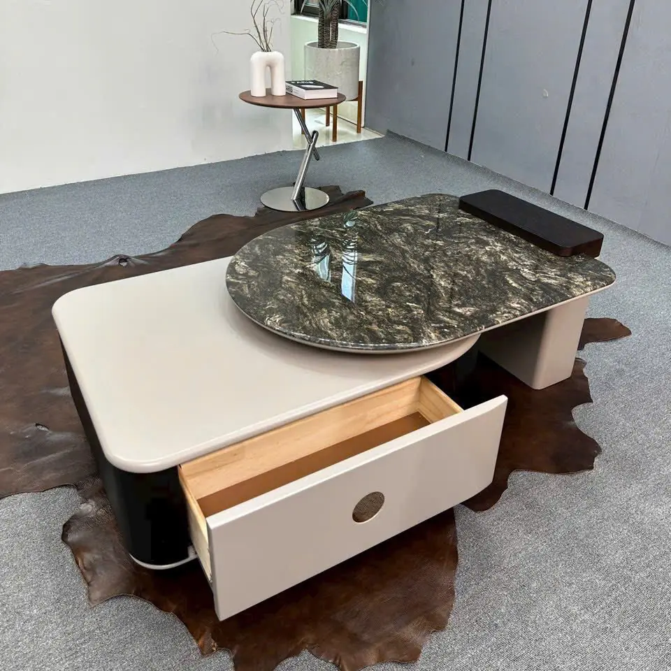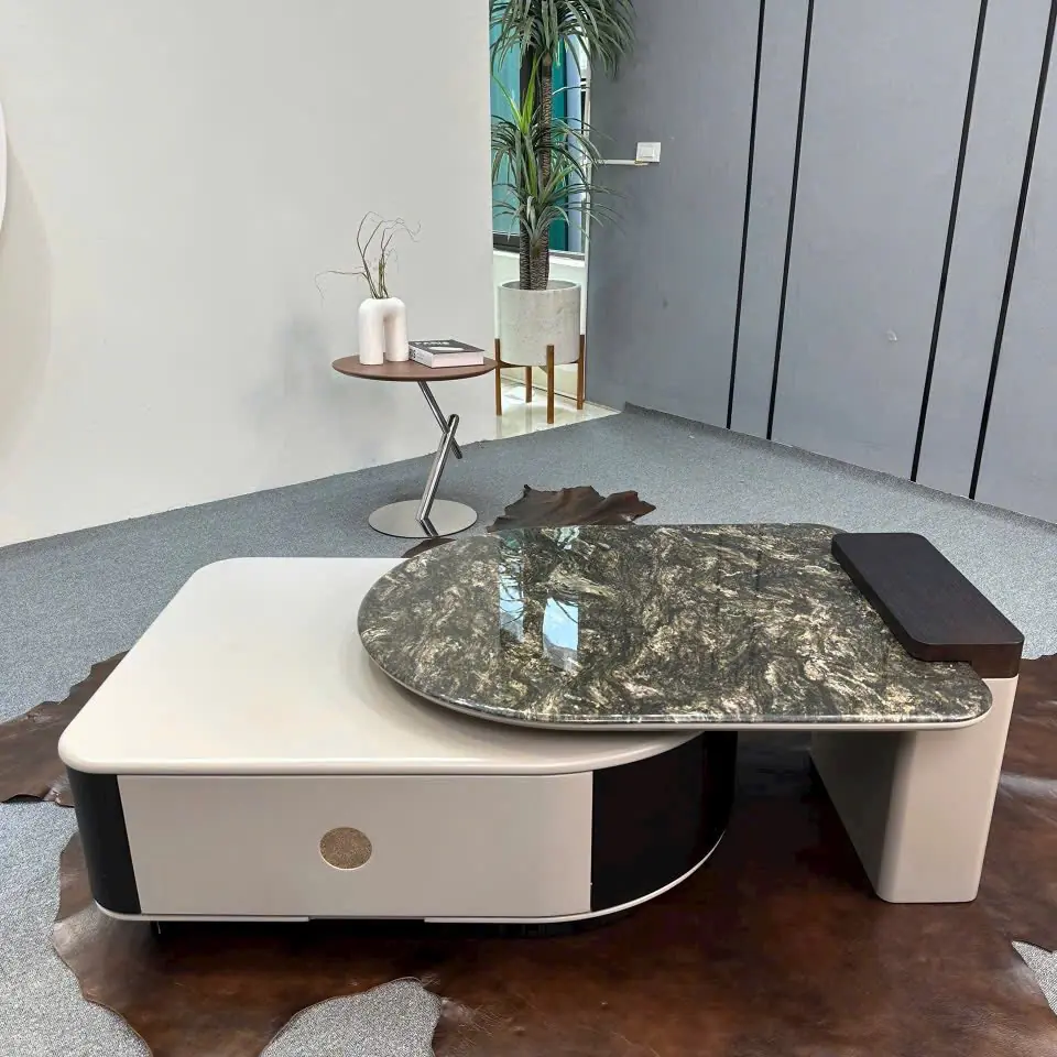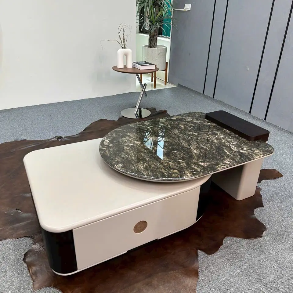 Mẫu bàn trà SP11394 mang đến sự khác biệt nhờ thiết kế đa năng trượt mở rộng thông minh, kết hợp mặt bàn tròn xoay đầy tiện dụng. Với gam màu trung tính cùng chất liệu đá vân mây đen bóng mịn, sản phẩm mang vẻ đẹp sang trọng, hiện đại, phù hợp với nhiều không gian nội thất cao cấp.