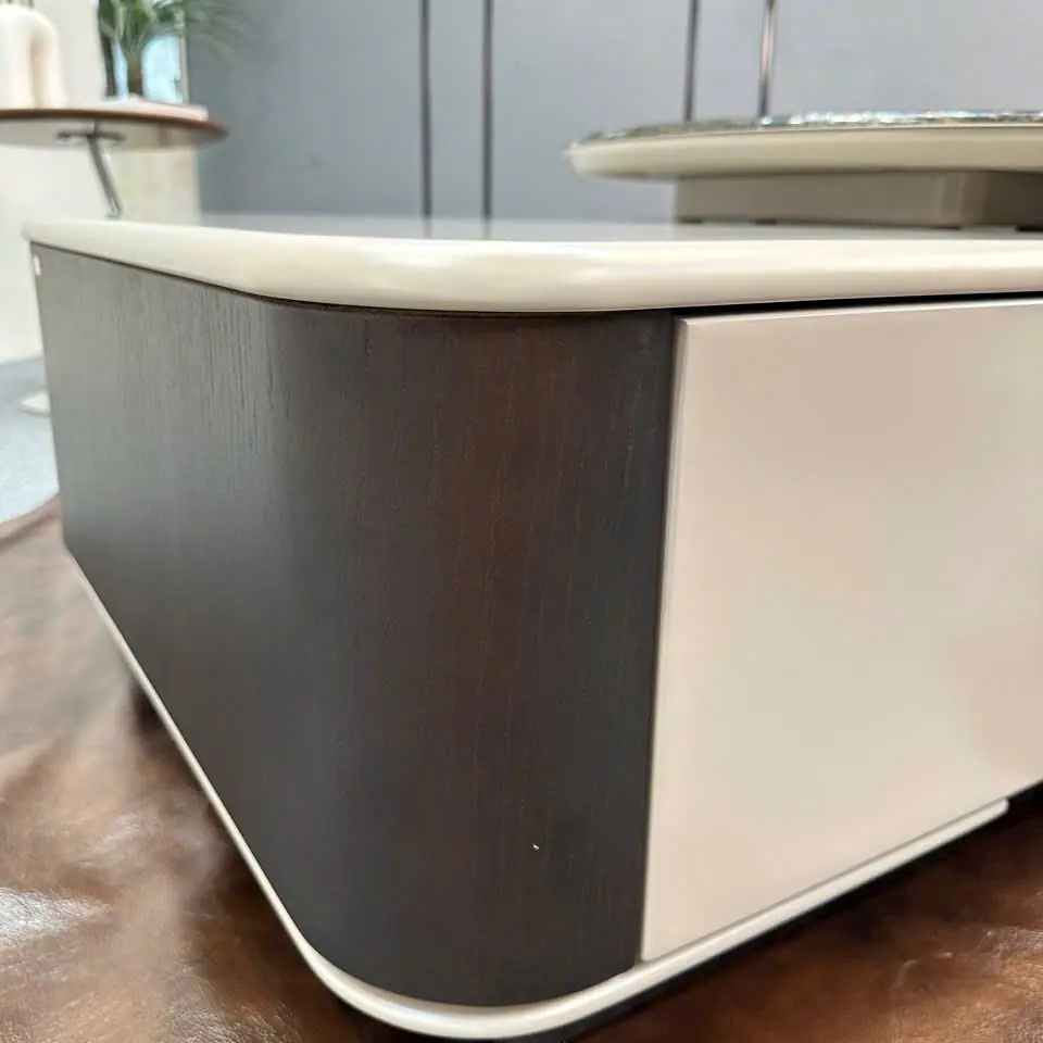 - Kiểu dáng: Bàn trà đa năng dạng trượt mở rộng, kết hợp mặt bàn tròn xoay – thiết kế sang trọng, hiện đại.