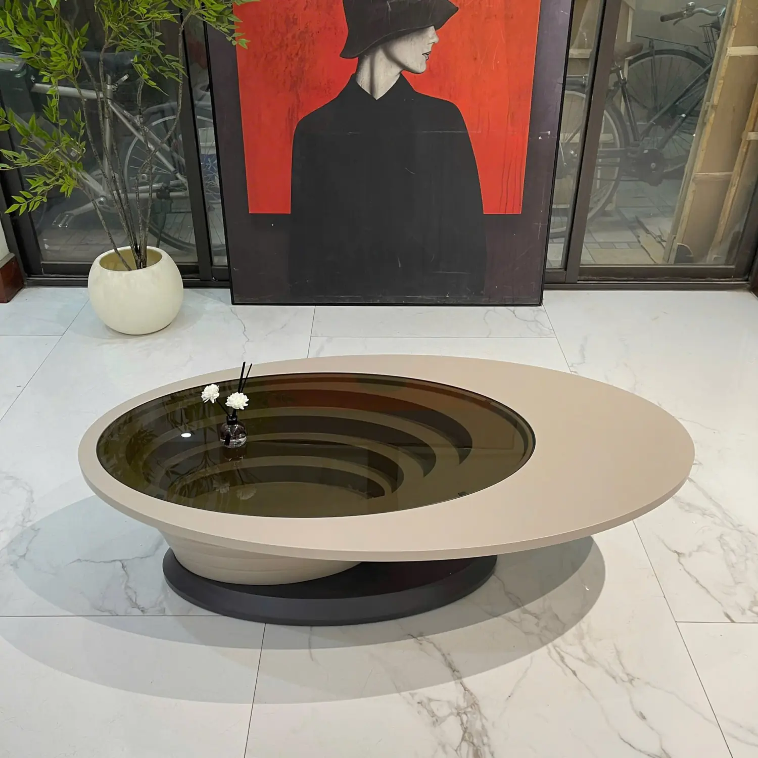 Ưu điểm nổi bật: Thiết kế oval độc đáo; mặt kính sang trọng; kết cấu chắc chắn; phù hợp nhiều không gian phòng khách.