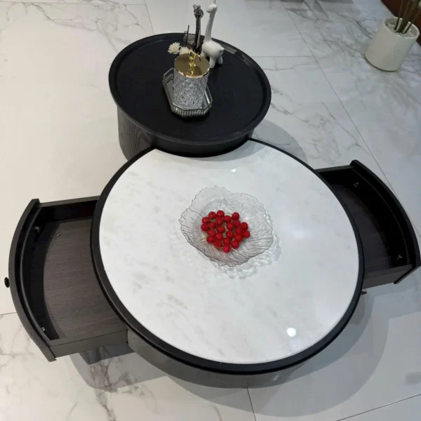 Bàn Trà Tròn Đôi Mặt Đá Cao Cấp Thanh Lịch – Điểm Nhấn Tinh Tế Cho Phòng Khách Hiện Đại