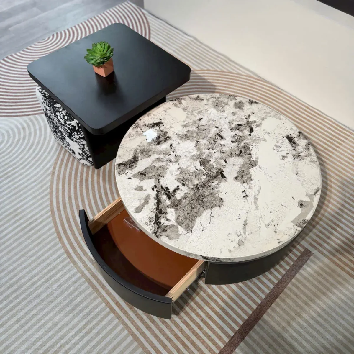 Bàn Trà Tròn Đôi Mặt Đá Hiện Đại – Giải Pháp Nội Thất Sang Trọng Cho Phòng Khách