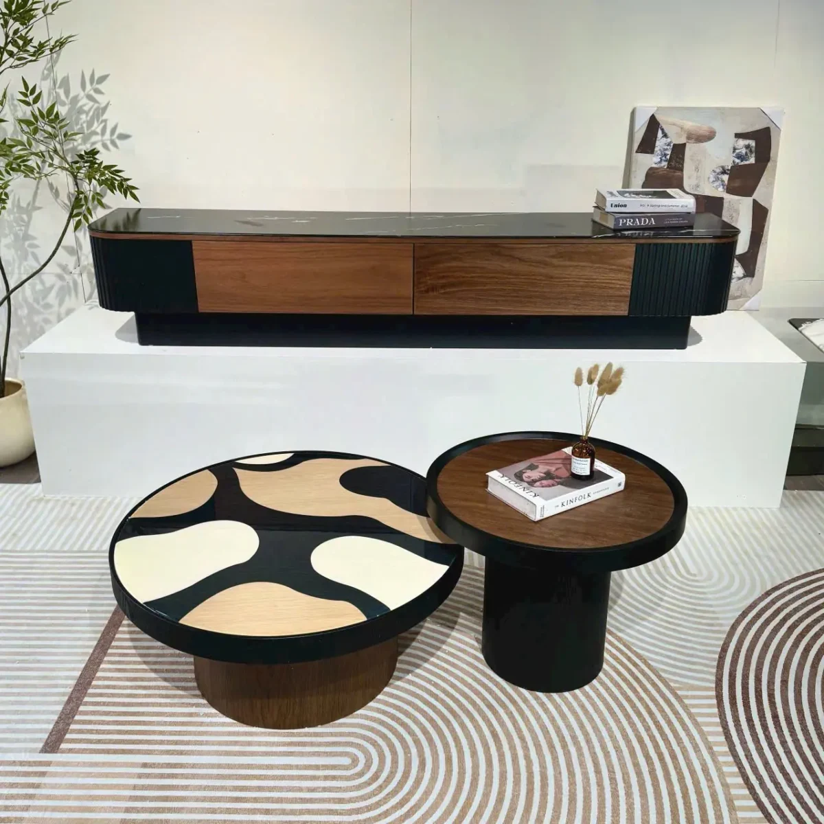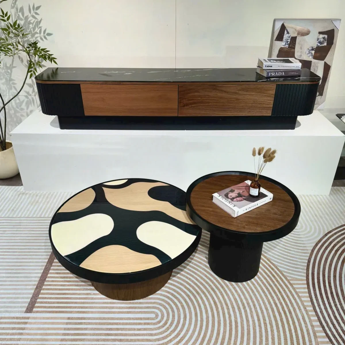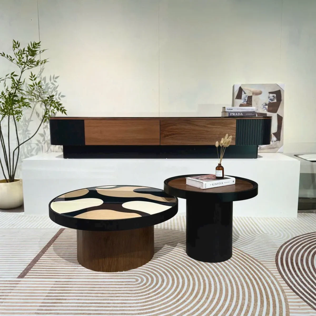 Bàn Trà Tròn Đôi Mặt Đá Phối Màu Hiện Đại – Điểm Nhấn Nghệ Thuật Cho Phòng Khách