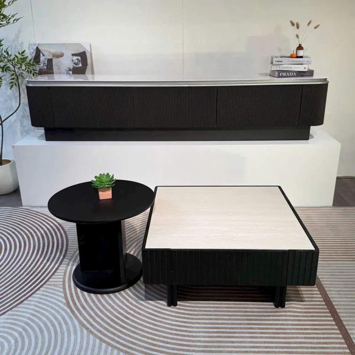 Với bố cục gồm bàn chính và bàn phụ đi kèm, mẫu bàn trà này không chỉ đáp ứng nhu cầu sử dụng hằng ngày mà còn tối ưu diện tích, giúp phòng khách luôn gọn gàng và khoa học. Đây là dòng bàn trà phòng khách được nhiều gia đình lựa chọn cho căn hộ chung cư và nhà phố hiện đại.