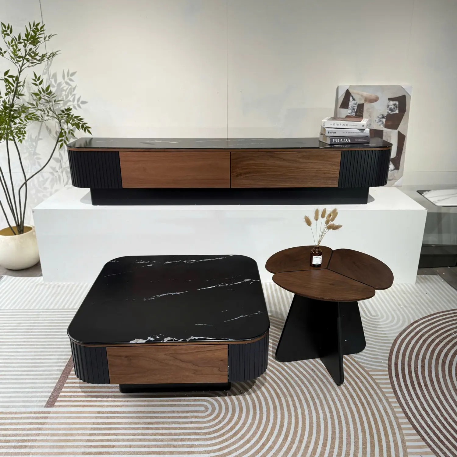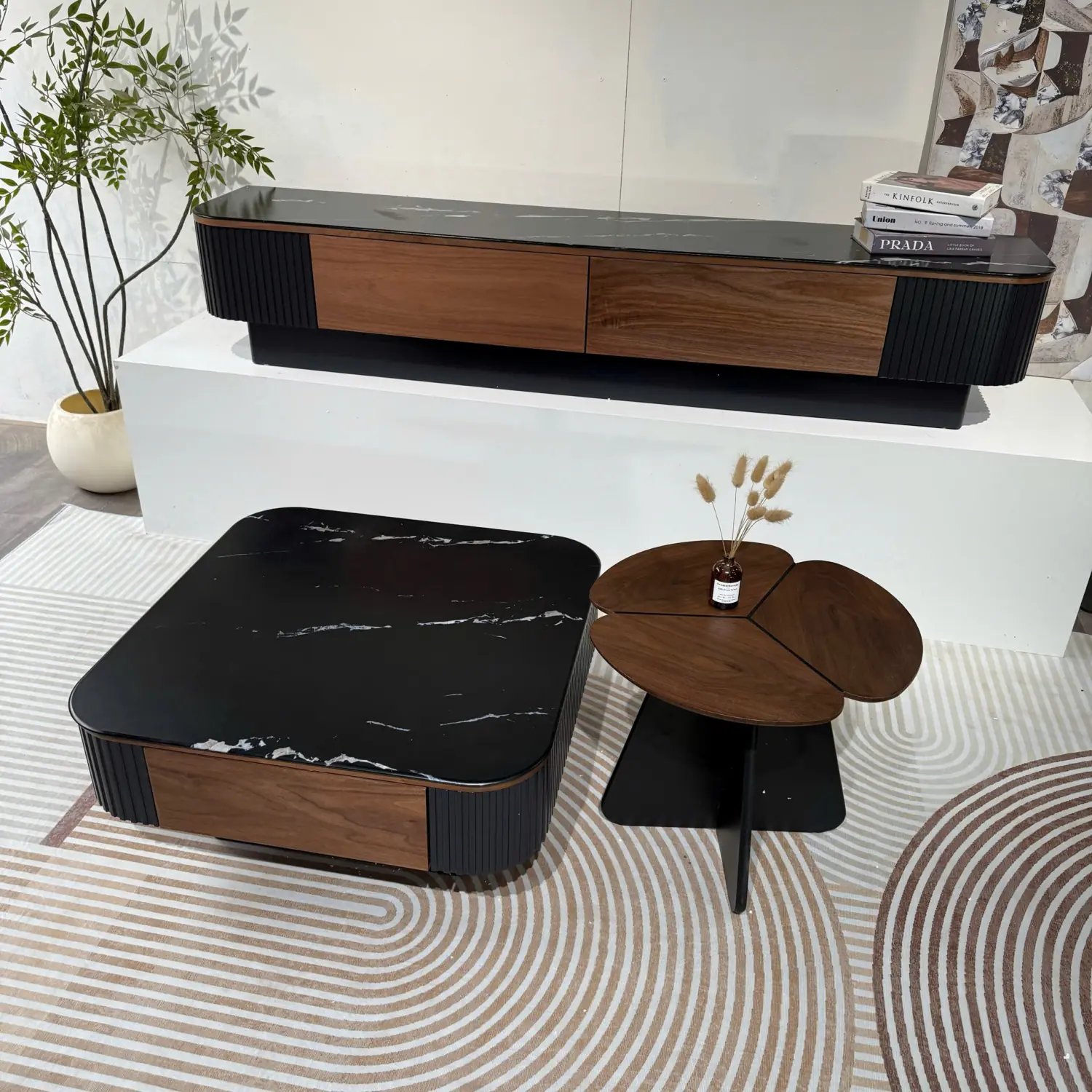 Bộ bàn trà vuông gỗ mặt đá SP18288 là sự kết hợp hoàn hảo giữa vẻ đẹp sang trọng hiện đại và sự tiện dụng thông minh. Bộ sản phẩm gồm 1 bàn trà vuông lớn mặt đá marble đen vân trắng và 1 bàn trà tròn nhỏ phụ, tạo nên không gian tiếp khách đẳng cấp, tinh tế cho phòng khách.