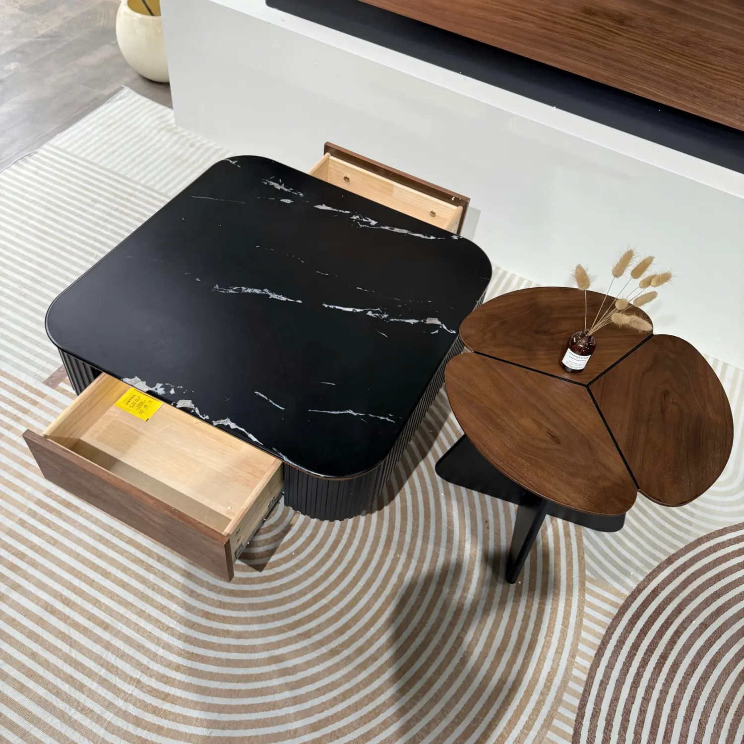 Bàn Trà Vuông Gỗ Mặt Đá Kèm Bàn Trà Nhỏ Hiện Đại – SP18288
