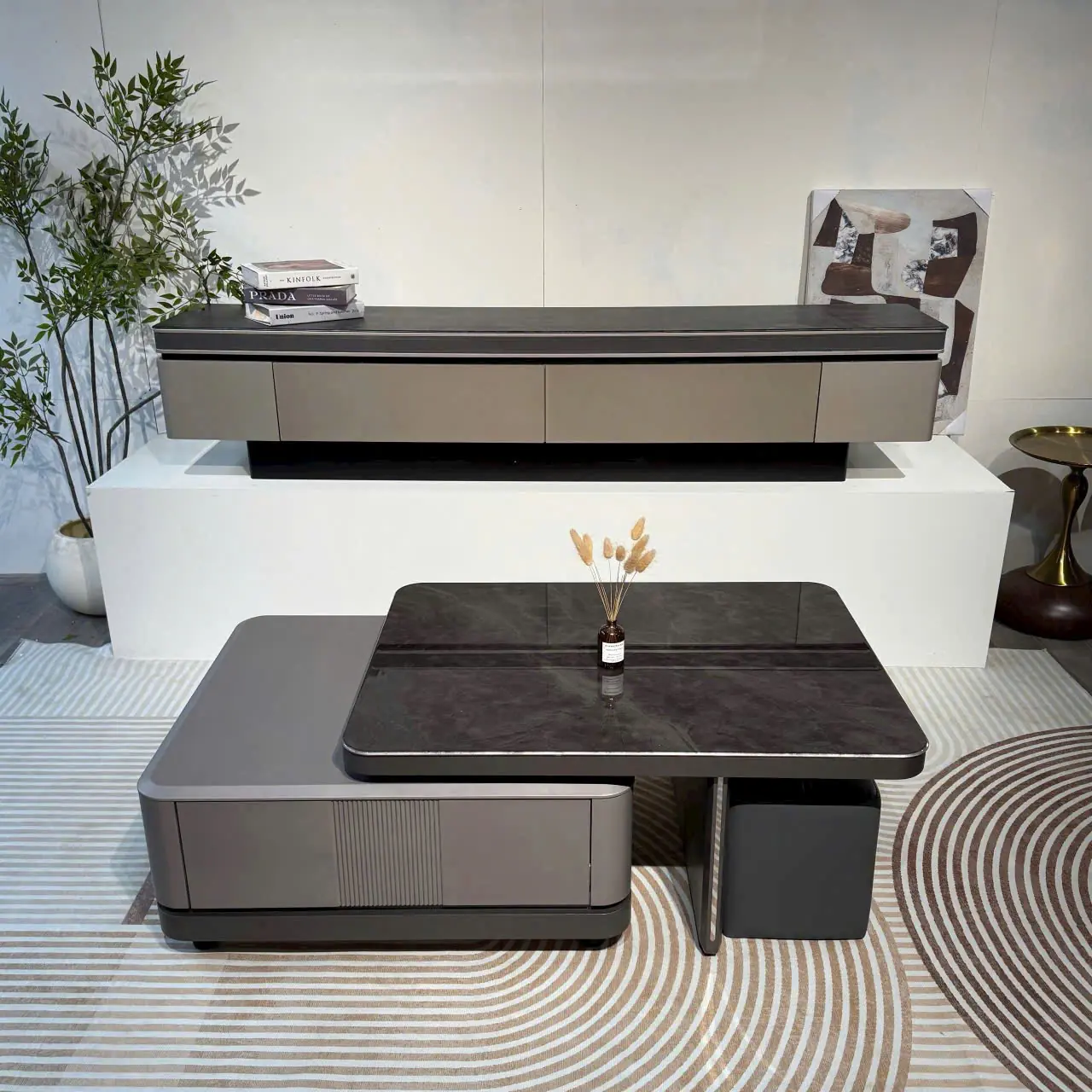 Bàn trà vuông kép mặt đá cao cấp là lựa chọn lý tưởng cho những không gian phòng khách hiện đại, nơi đề cao tính thẩm mỹ, công năng và sự gọn gàng trong bố cục nội thất. Thiết kế vuông vắn kết hợp hai khối bàn liền kề mang đến cảm giác chắc chắn, cân đối, đồng thời tạo điểm nhấn sang trọng cho tổng thể không gian sống.