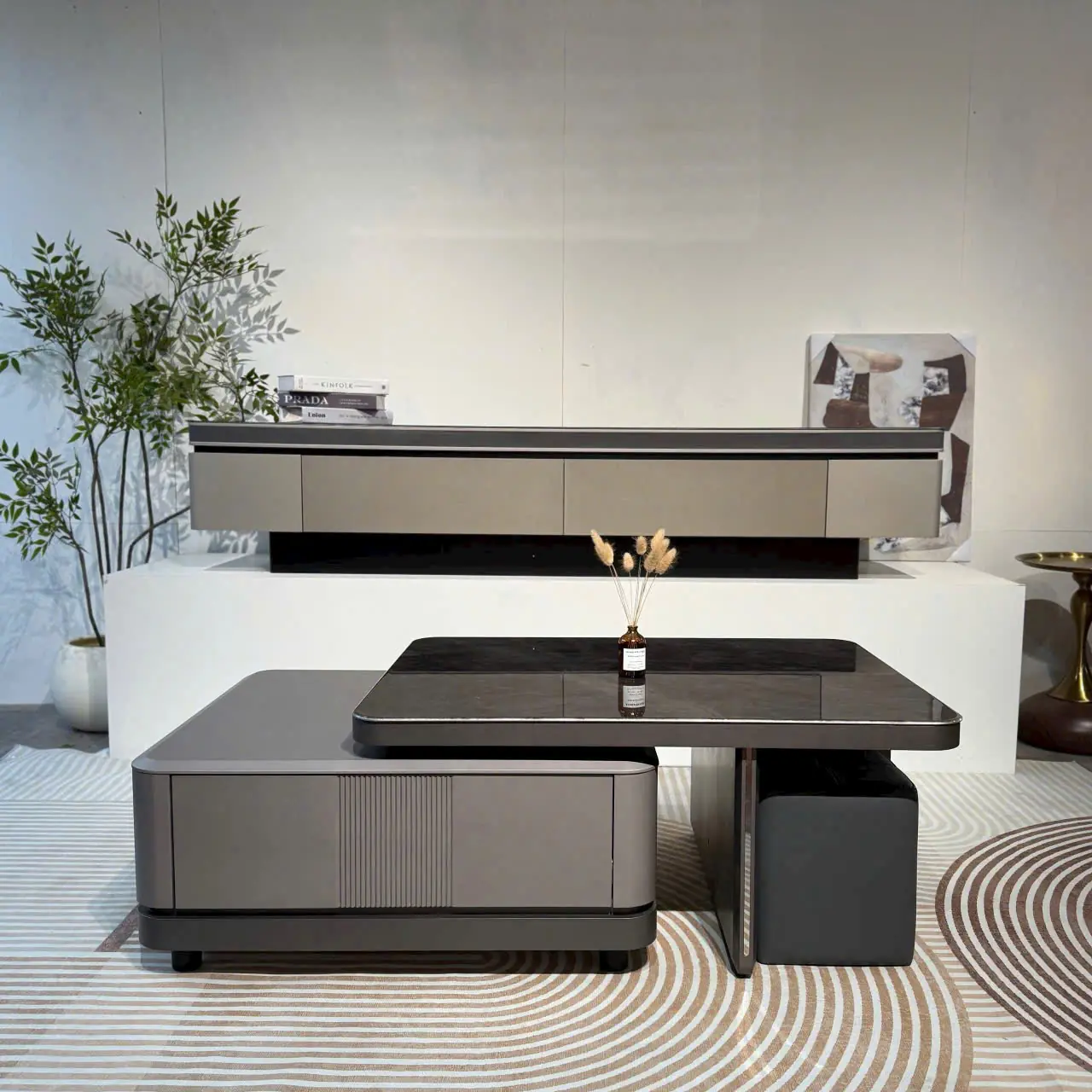 Sản phẩm sở hữu kiểu dáng hiện đại, đường nét tối giản nhưng tinh tế, dễ dàng kết hợp cùng sofa da, sofa vải hoặc các phong cách nội thất từ hiện đại, tối giản cho đến bán luxury. Đây là mẫu bàn trà rất được ưa chuộng trong các căn hộ chung cư cao cấp, nhà phố và biệt thự.