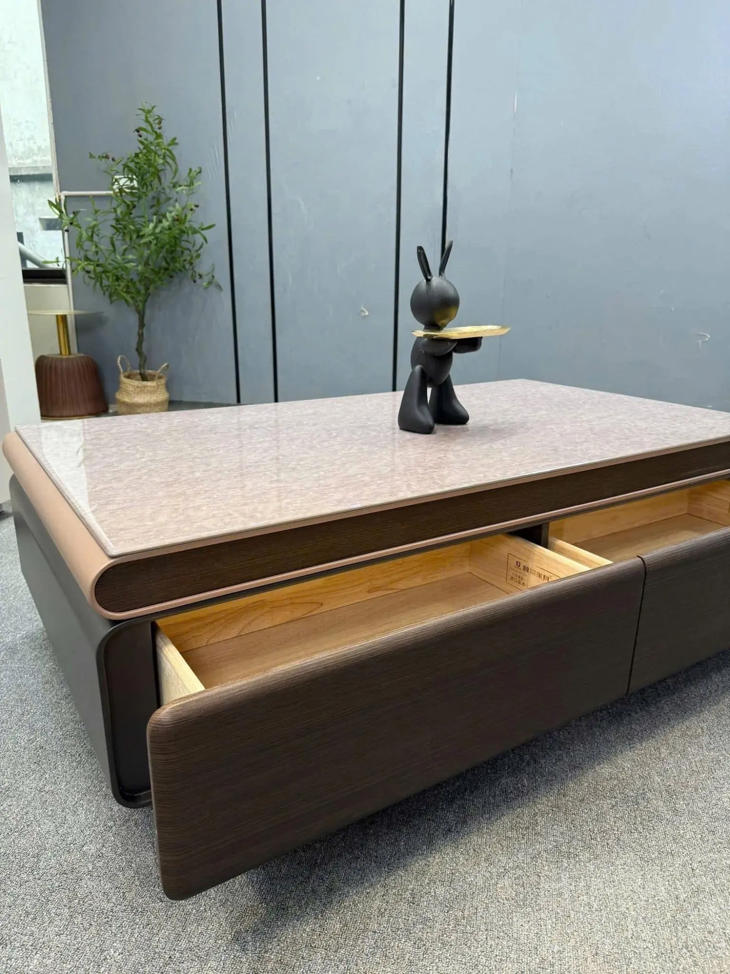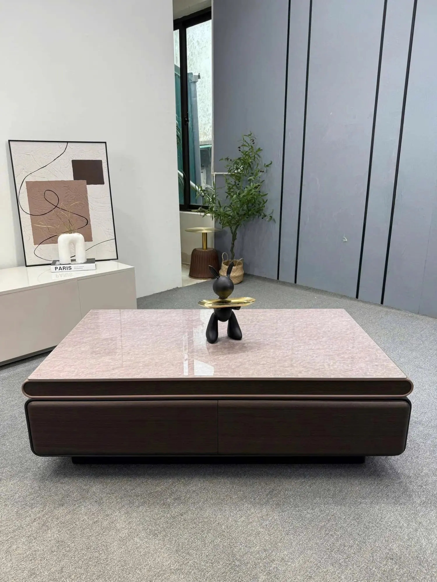 - Màu sắc: Hồng vân mây phối nâu sậm – tông màu ấm, dễ phối cùng sofa sáng màu.