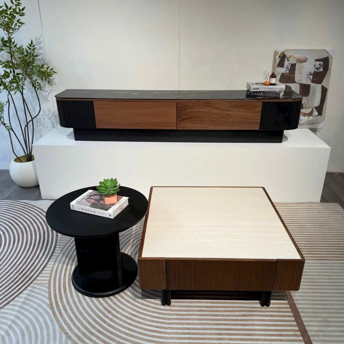 Không chỉ đóng vai trò là bàn tiếp khách, bàn trà vuông mặt đá hiện đại SP15206 còn tích hợp hộc kéo tiện lợi, giúp lưu trữ điều khiển, sách báo hoặc các vật dụng nhỏ gọn trong phòng khách. Thiết kế ngăn kéo ẩn giữ cho tổng thể bàn luôn gọn gàng, sạch sẽ, đúng tinh thần nội thất hiện đại.