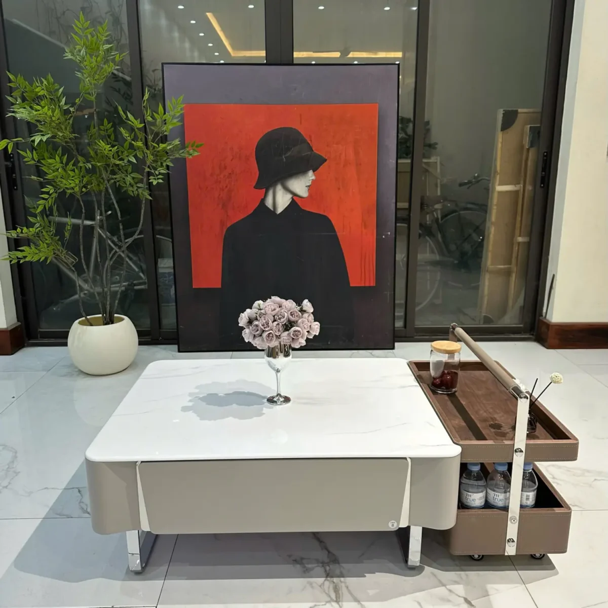 Thiết kế kệ trượt linh hoạt giúp việc sử dụng trở nên thuận tiện hơn mà vẫn đảm bảo tính thẩm mỹ cho tổng thể bàn trà.