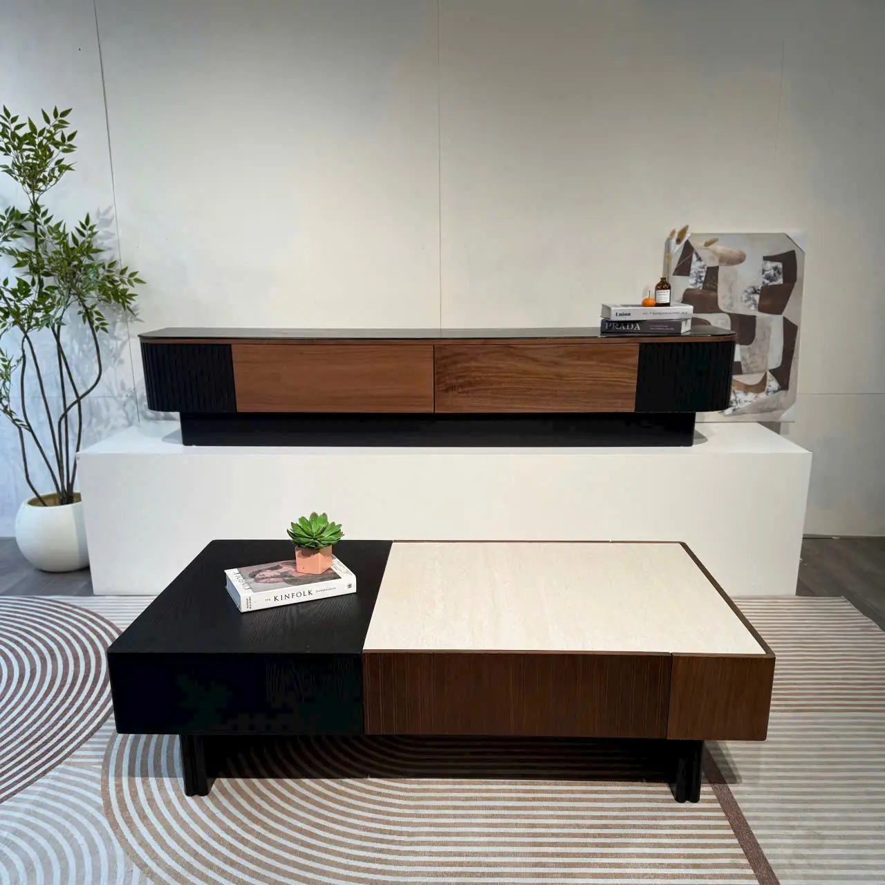 Sản phẩm gây ấn tượng với thiết kế vuông vức, cân đối, kết hợp hài hòa giữa mặt đá cao cấp và phần thân gỗ MDF hoàn thiện tỉ mỉ. Sự phối hợp vật liệu thông minh giúp chiếc bàn trà vừa mang vẻ đẹp hiện đại, vừa tạo cảm giác chắc chắn, bền bỉ trong quá trình sử dụng lâu dài.