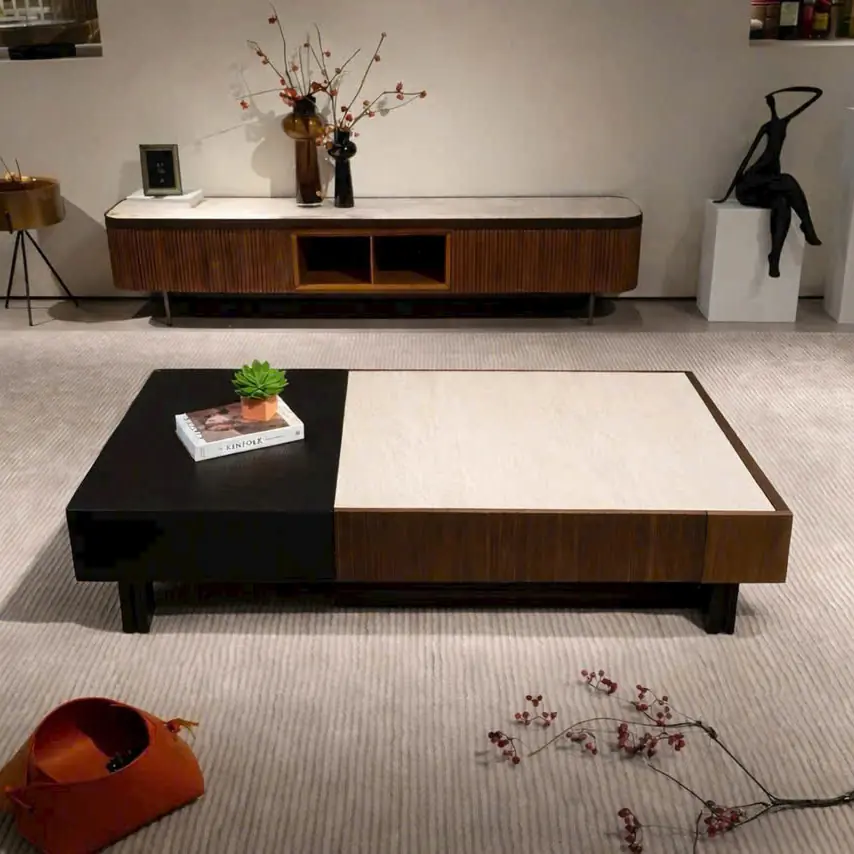 Bàn Trà Vuông Mặt Đá Phối Gỗ Sang Trọng Thanh Lịch – SP15200
