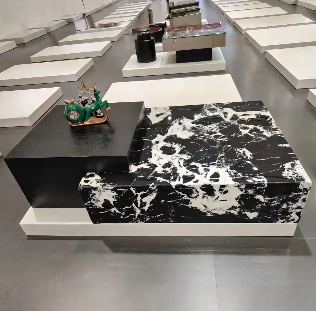 Bàn Trà Vuông Mặt Đá Phối Màu Sang Trọng Cao Cấp – SP17378