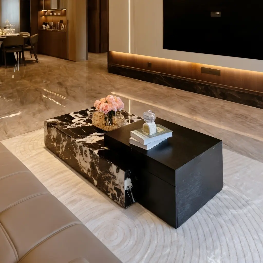 Mẫu bàn này đặc biệt phù hợp với các không gian nội thất phòng khách hiện đại hoặc sang trọng.