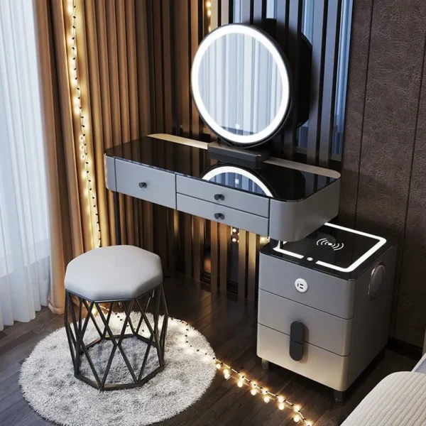 Hệ tủ kết hợp ngăn kéo dung tích lớn cho phép người dùng sắp xếp mỹ phẩm, đồ cá nhân gọn gàng, tránh bừa bộn mặt bàn. Đây là ưu điểm đặc biệt phù hợp với những ai yêu thích không gian sống tối giản, sạch sẽ và có tính tổ chức cao.