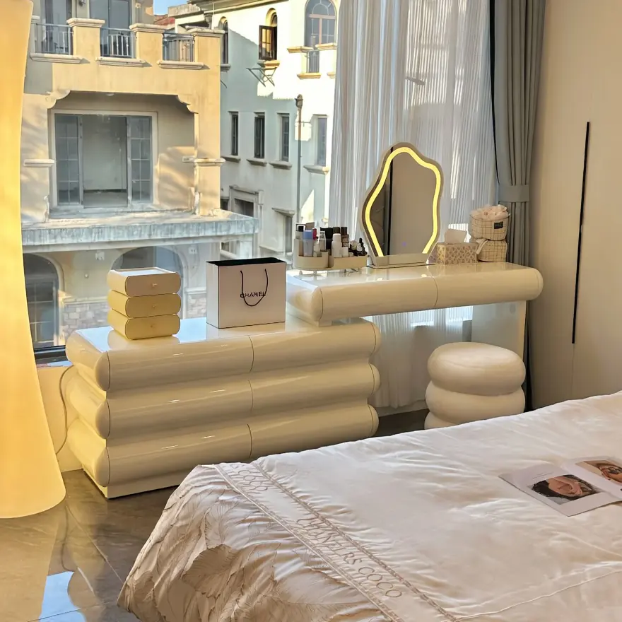 - Phong cách hiện đại sang trọng, gọn gàng, phù hợp phòng ngủ nhỏ hoặc góc trang điểm