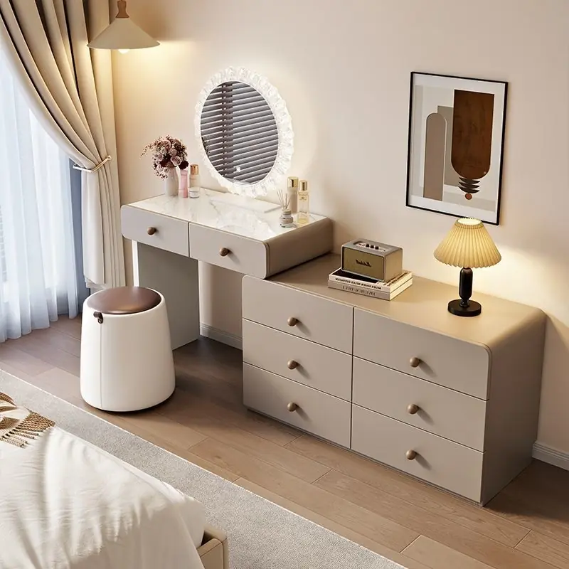 ✅ Thiết kế đa năng: Kết hợp bàn trang điểm và tủ lưu trữ trong một tổng thể tiện ích, tiết kiệm diện tích tối đa.