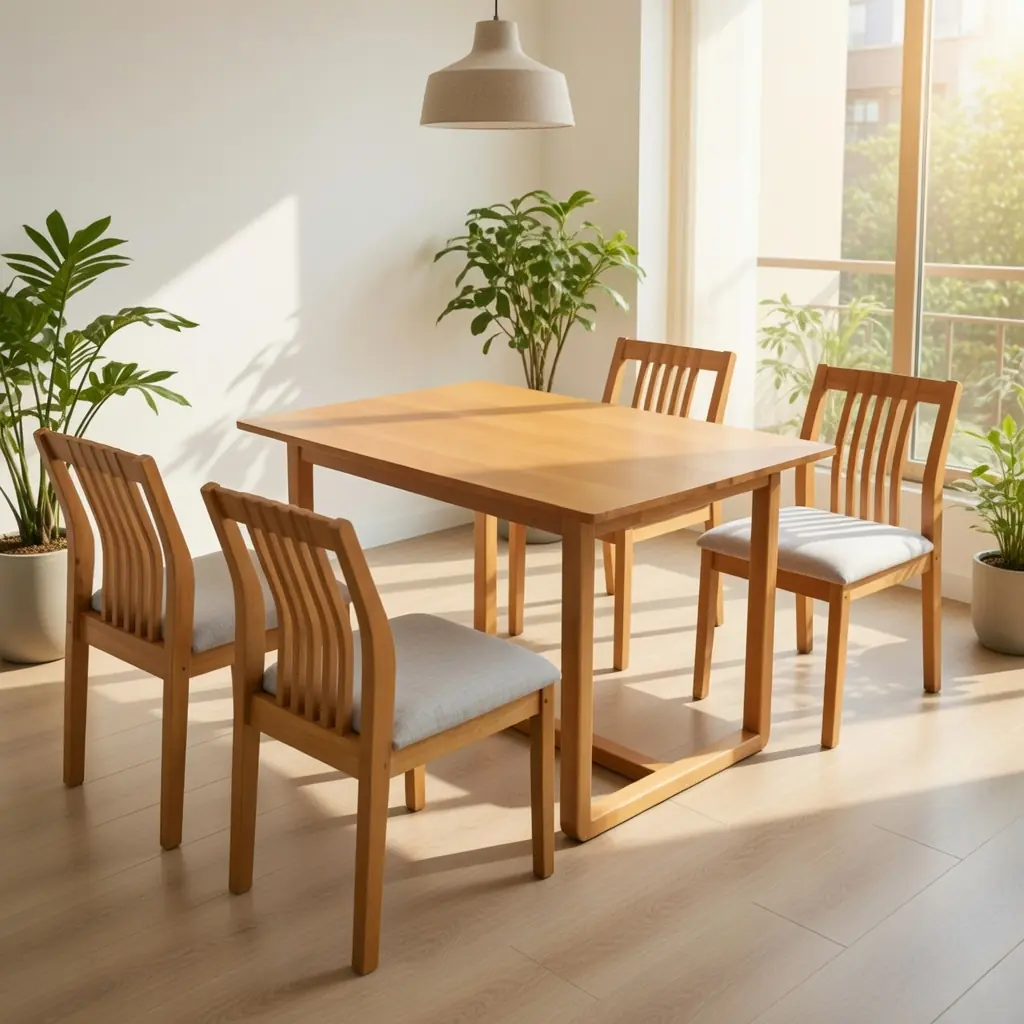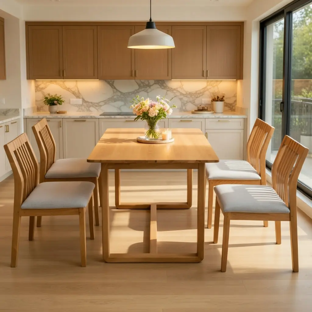 Bộ Bàn Ăn 4 Ghế Gỗ Tự Nhiên Cao Cấp – Tối Giản & Sang Trọng