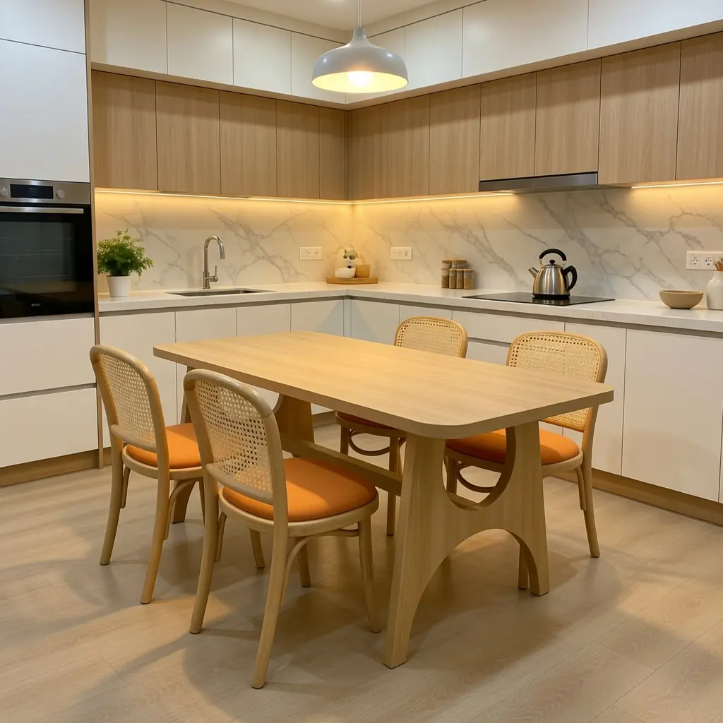 Mẫu bàn ăn gỗ tự nhiên 4 ghế được thiết kế tối giản, tinh tế với chất liệu gỗ tần bì bền đẹp. Kết hợp ghế đệm da tựa mây thoáng mát, sản phẩm mang đến sự ấm cúng và tiện nghi cho phòng bếp gia đình hiện đại. Đây là lựa chọn hoàn hảo cho những không gian yêu thích sự mộc mạc nhưng vẫn sang trọng.