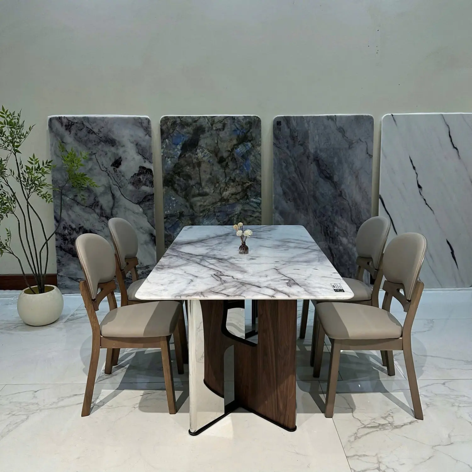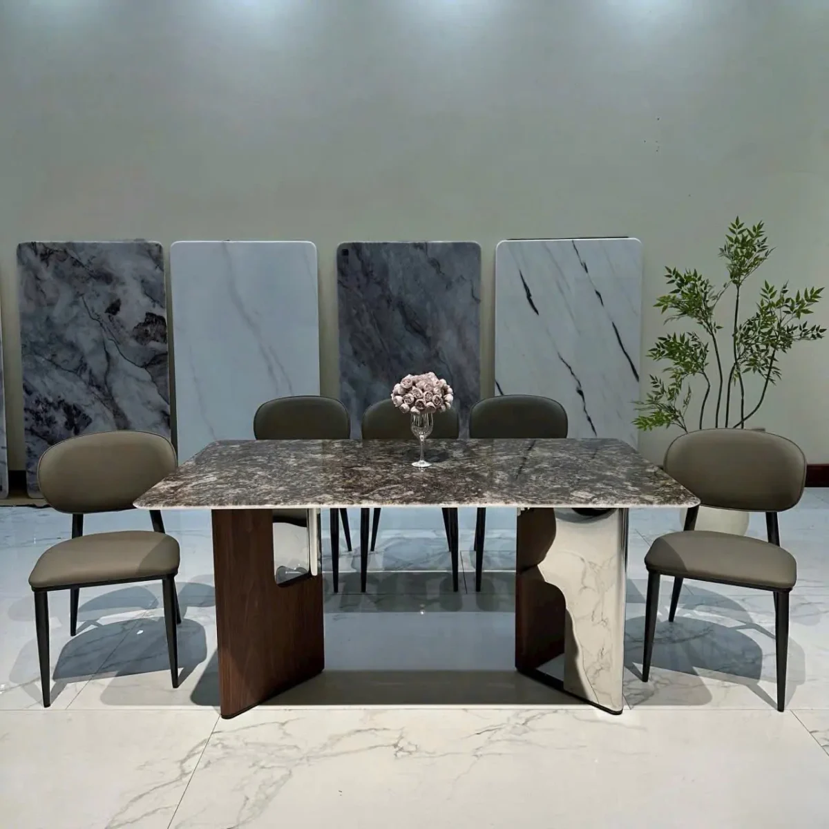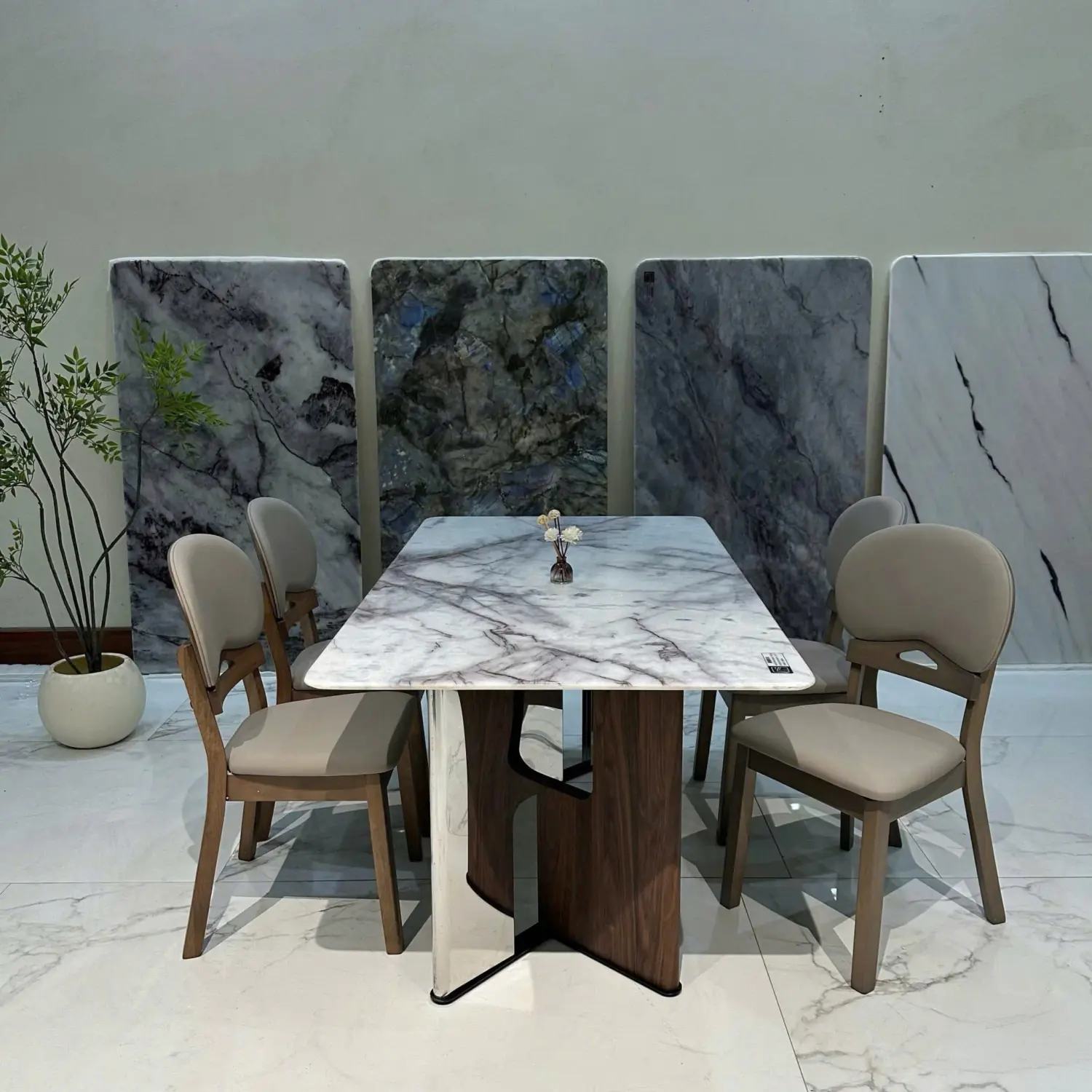 ✅ Chất liệu cao cấp: Đá vi tinh thể tự nhiên, khung thép mạ tĩnh điện, gỗ sồi nhập khẩu và da PU cao cấp.