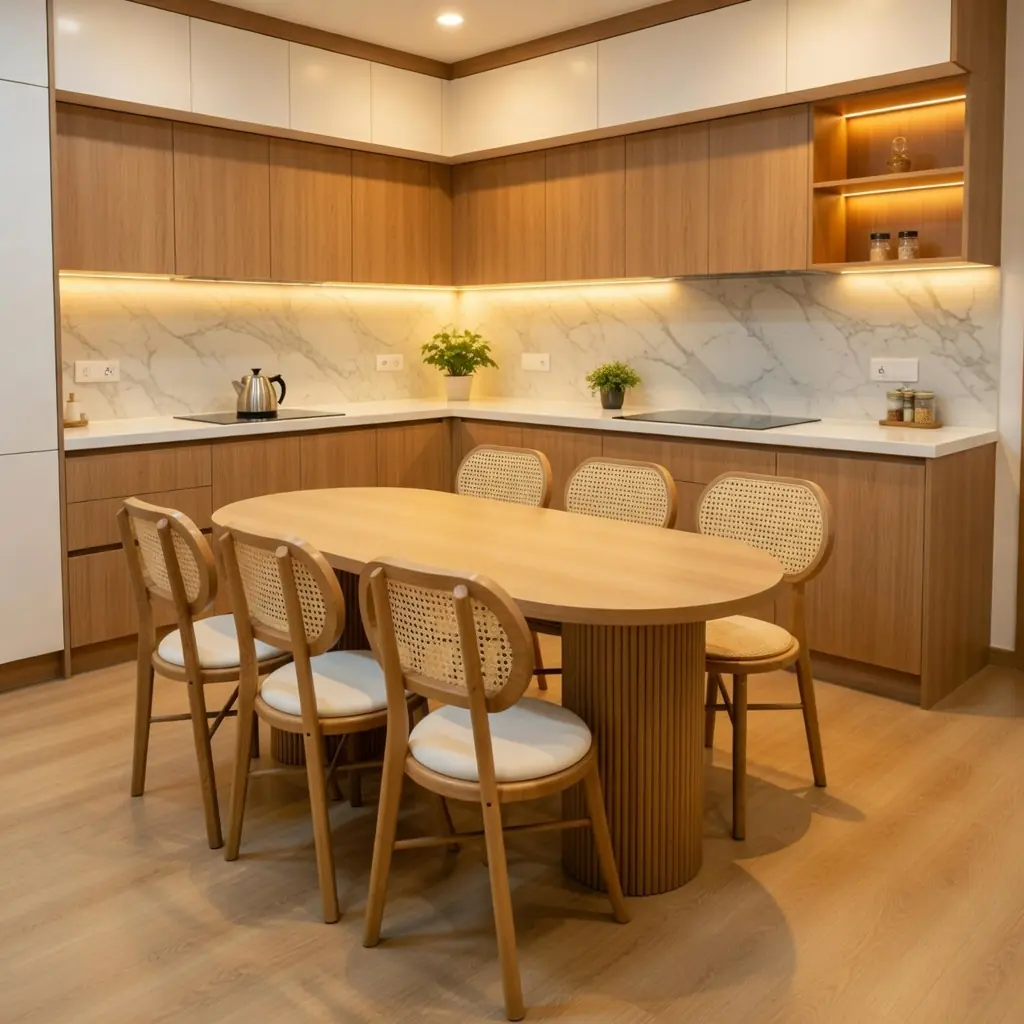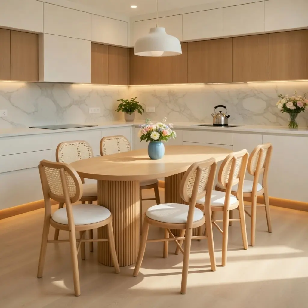 Bàn ghế thiết kế công thái học, ngồi thoải mái trong mọi bữa ăn.