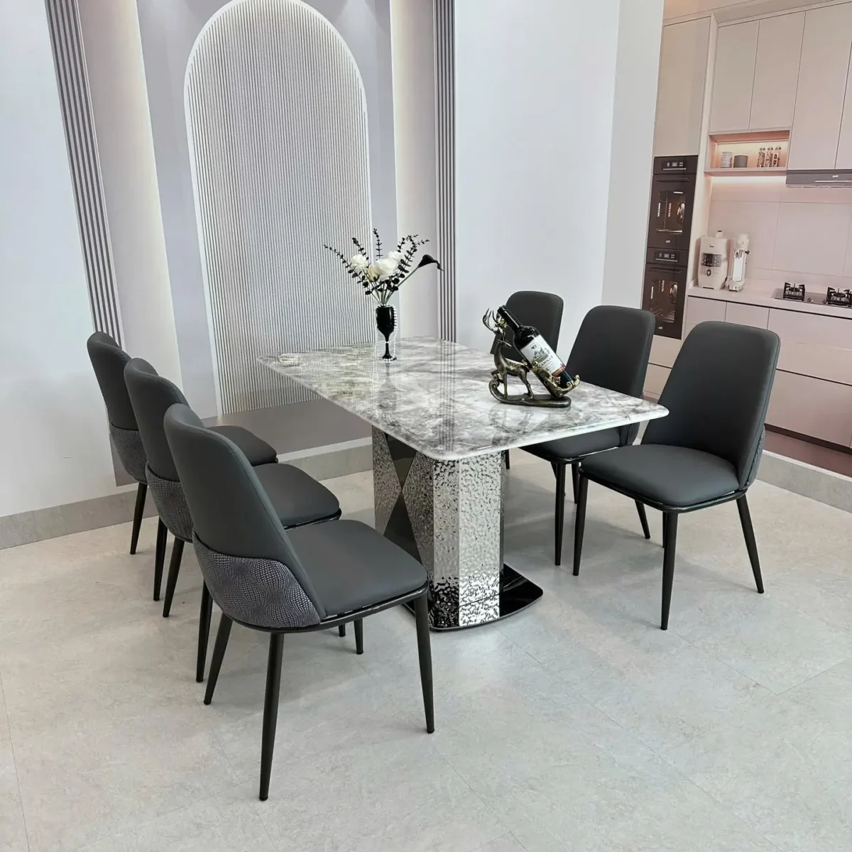 Bộ Bàn Ăn 6 Ghế Mặt Đá Cao Cấp – Thiết Kế Hiện Đại & Sang Trọng