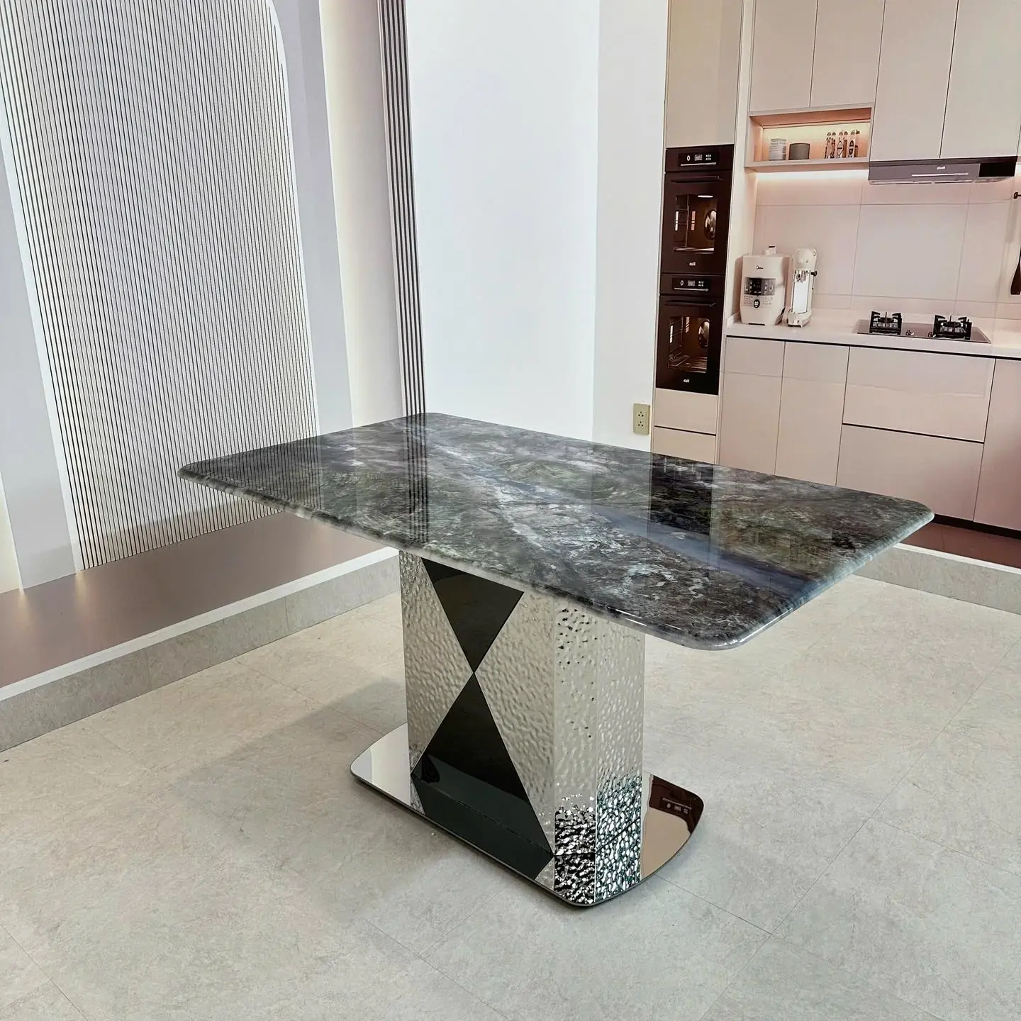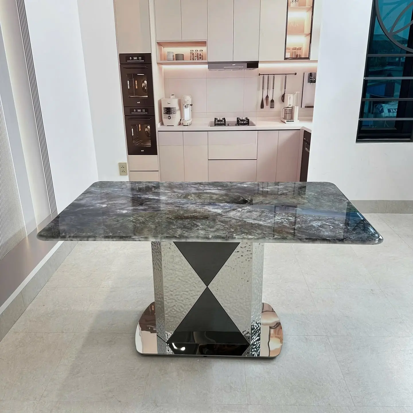 Mẫu bàn ăn mặt đá 6 ghế cao cấp là lựa chọn hoàn hảo cho không gian bếp hiện đại. Sự kết hợp tinh tế giữa mặt đá vi tinh thể sang trọng, chân bàn trụ vững chắc và ghế da nhập khẩu cao cấp giúp tôn lên vẻ đẹp đẳng cấp, tiện nghi cho tổ ấm gia đình.