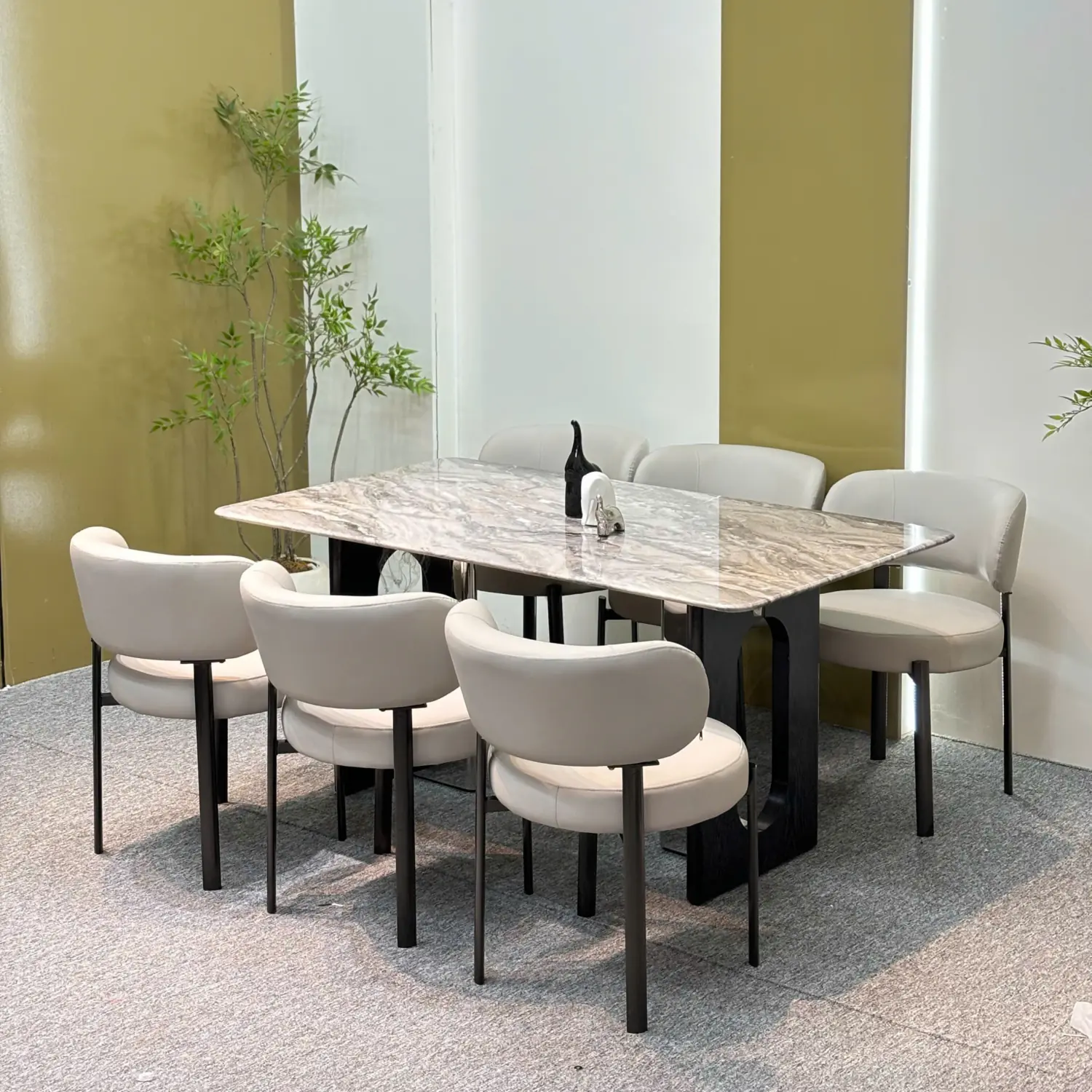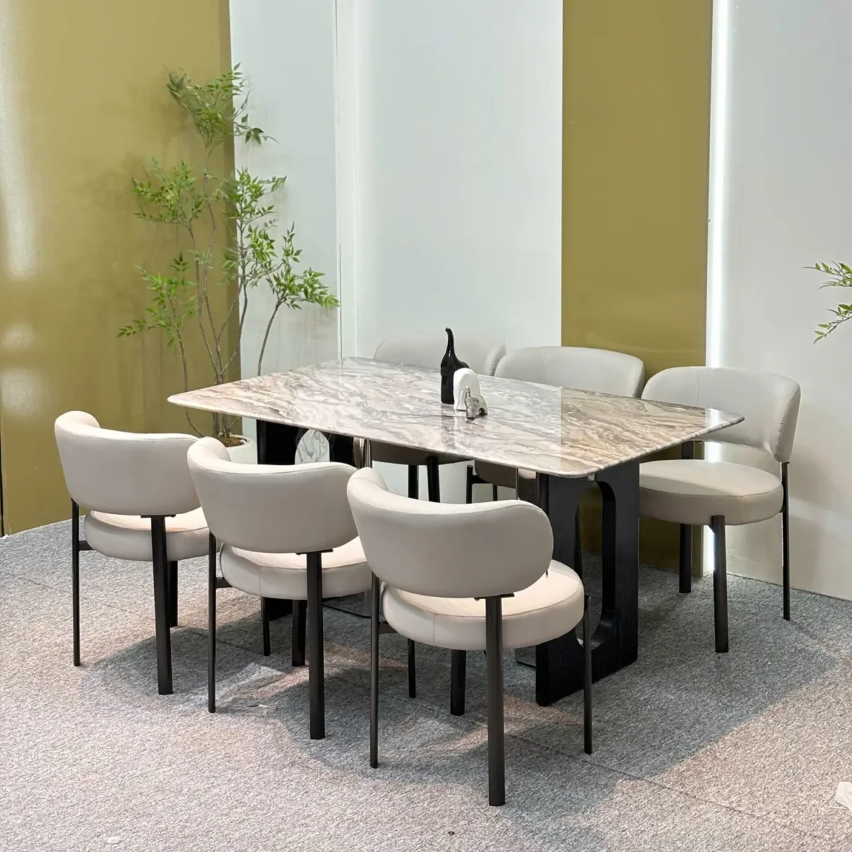 Bộ Bàn Ăn 6 Ghế Mặt Đá Chân Chữ V Cao Cấp Hiện Đại – SP16314