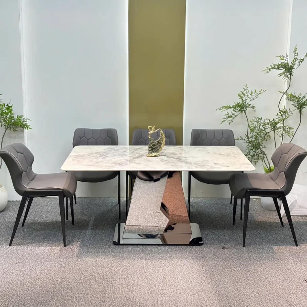 Bộ Bàn Ăn 6 Ghế Mặt Đá Chân Inox Cao Cấp – Thiết Kế Hiện Đại, Sang Trọng