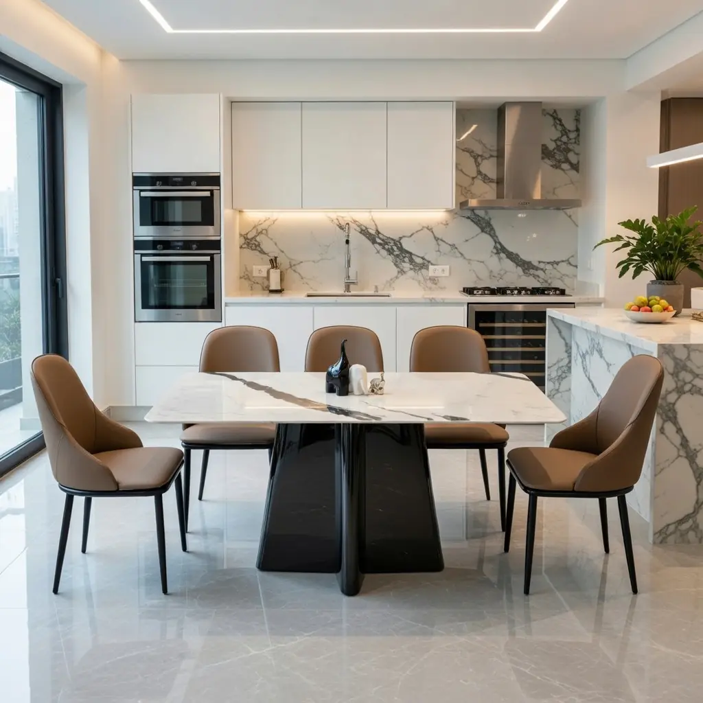 Bộ Bàn Ăn 6 Ghế Mặt Đá Chân Inox – Thiết Kế Hiện Đại, Sang Trọng Cho Không Gian Bếp