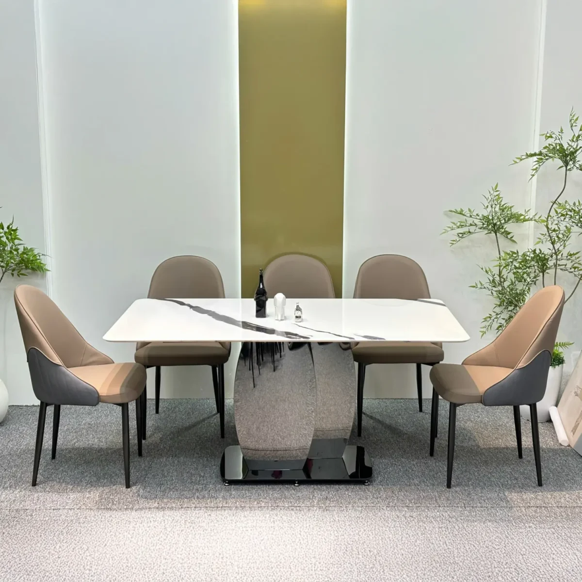 Bộ Bàn Ăn Mặt Đá Vi Tinh Thể Cao Cấp, Ghế Bọc Da Nhập Khẩu – Sang Trọng & Hiện Đại