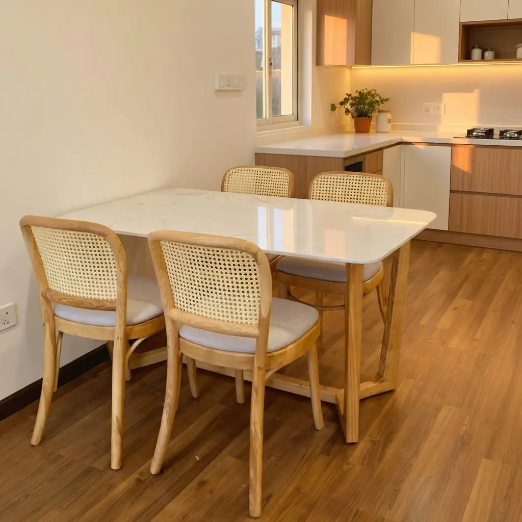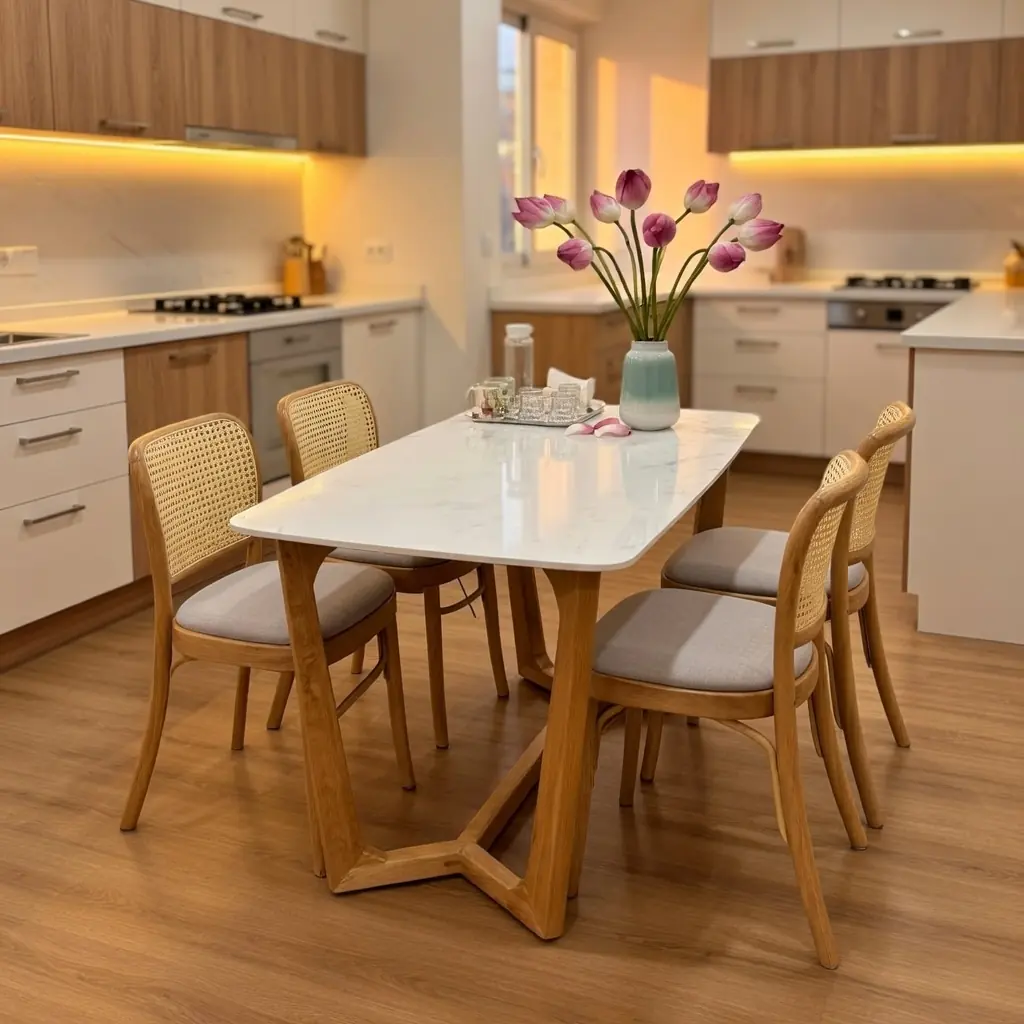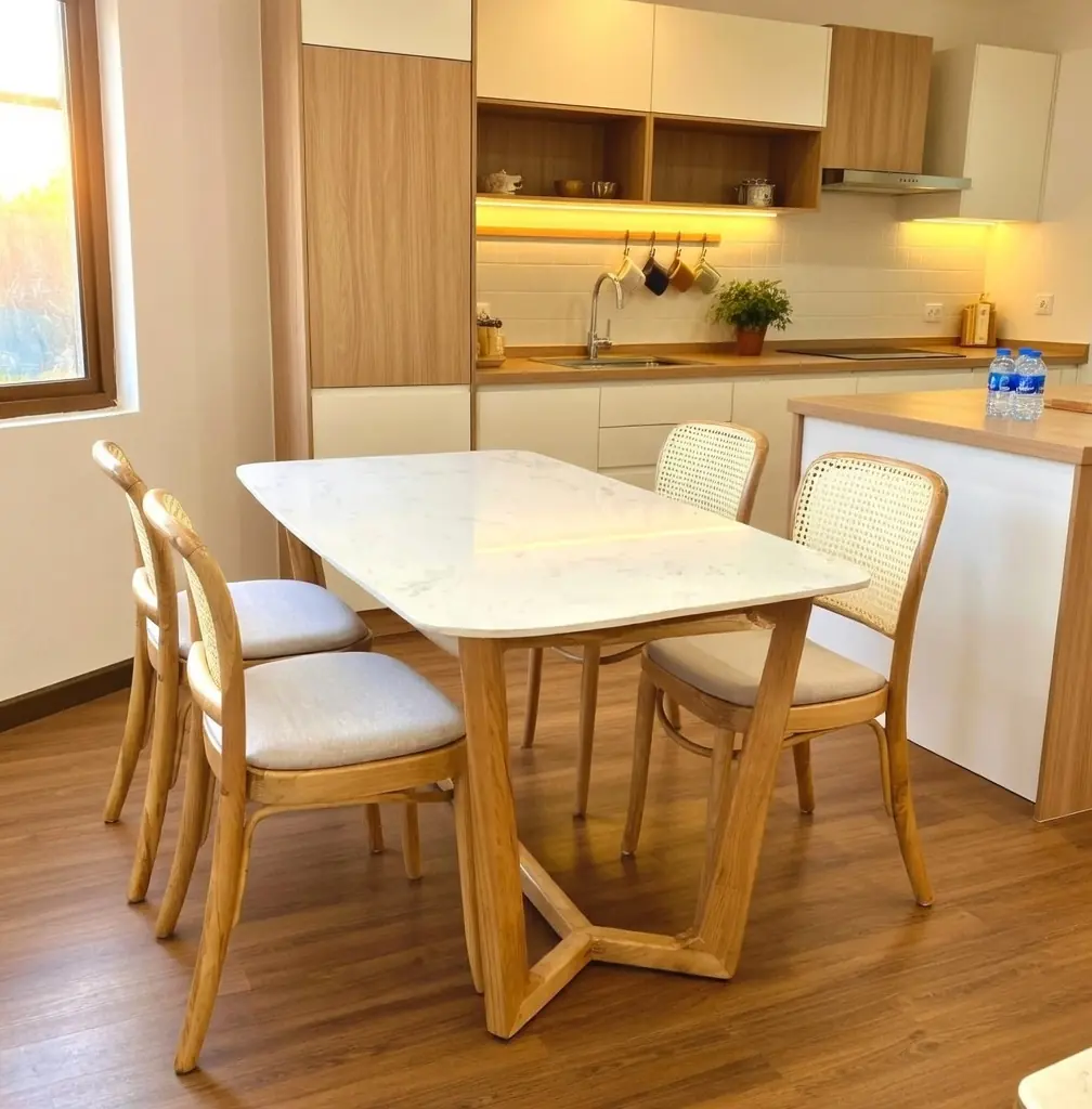 Bộ Bàn Ăn Gỗ 4 Ghế Mặt Đá Cao Cấp – Hiện Đại & Sang Trọng