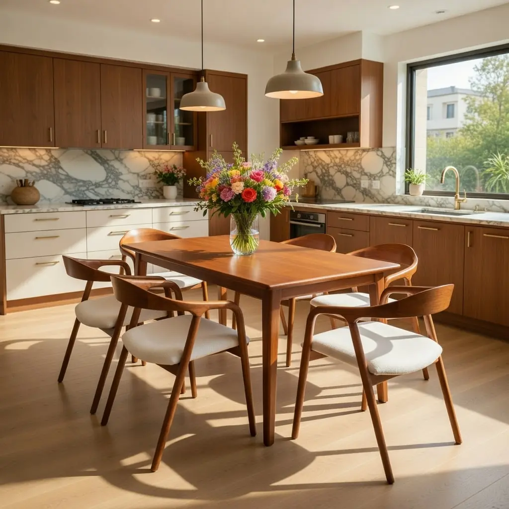 Bộ Bàn Ăn Gỗ 6 Ghế Bọc Da Cao Cấp – Sang Trọng & Tiện Nghi