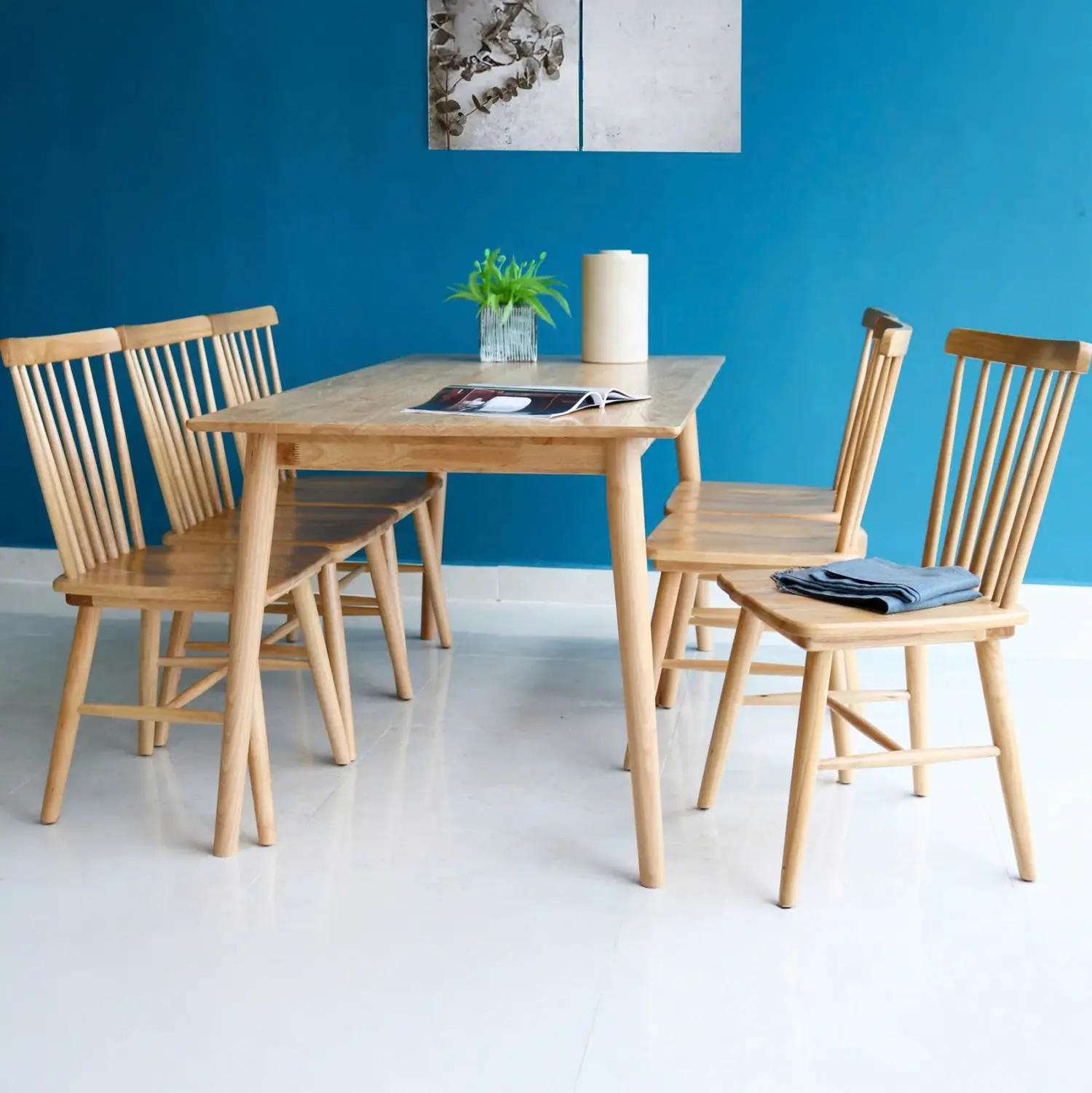 Bộ Bàn Ăn Gỗ Cao Su Tự Nhiên Hiện Đại – Tối Giản & Sang Trọng