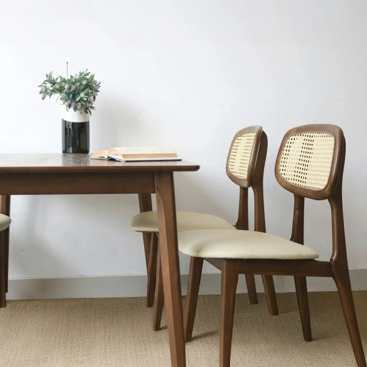 Kiểu dáng: Bàn chữ nhật bo góc mềm mại, ghế lưng mây tự nhiên tạo điểm nhấn tinh tế.
