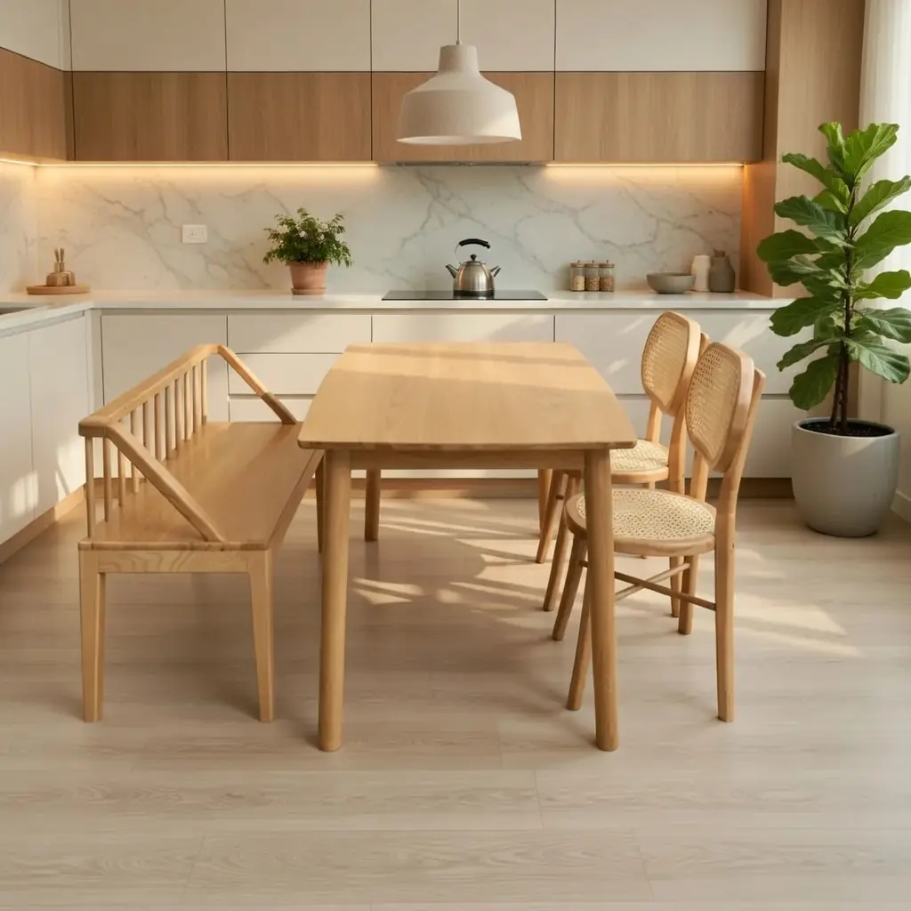 Bộ Bàn Ăn Gỗ Tự Nhiên Hiện Đại – Tối Giản & Sang Trọng