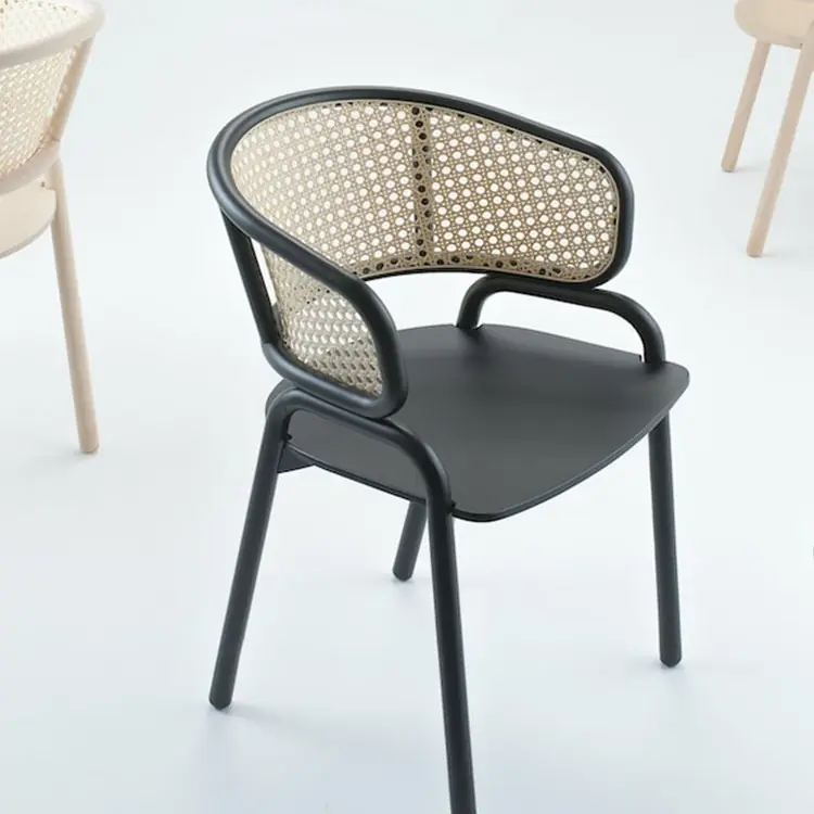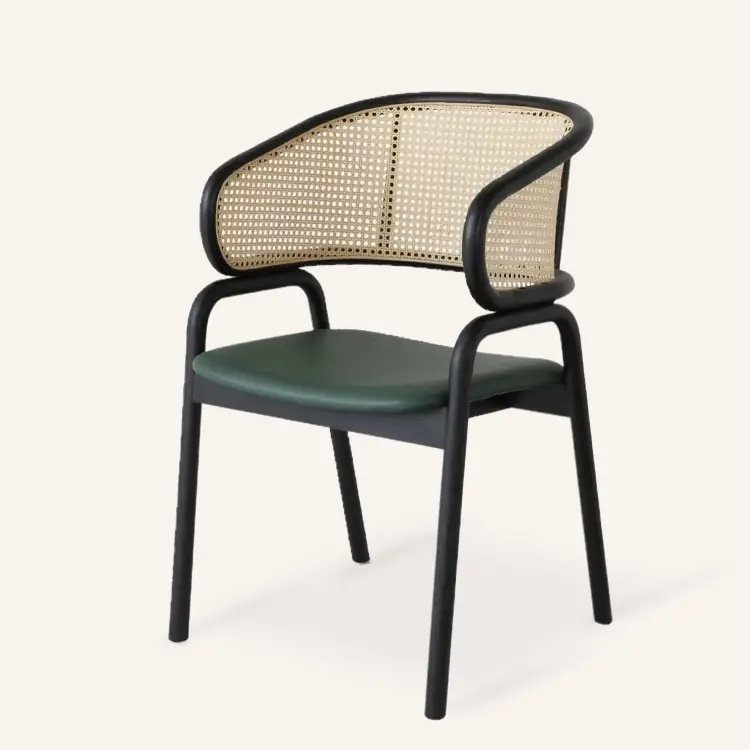 Lưng tựa đan mây: Những chiếc ghế ăn trong bộ sưu tập này sở hữu phần tựa lưng đan mây mắt cáo tự nhiên, không chỉ mang lại sự thoáng mát khi ngồi mà còn gợi nhớ đến vẻ đẹp truyền thống đầy tinh tế.