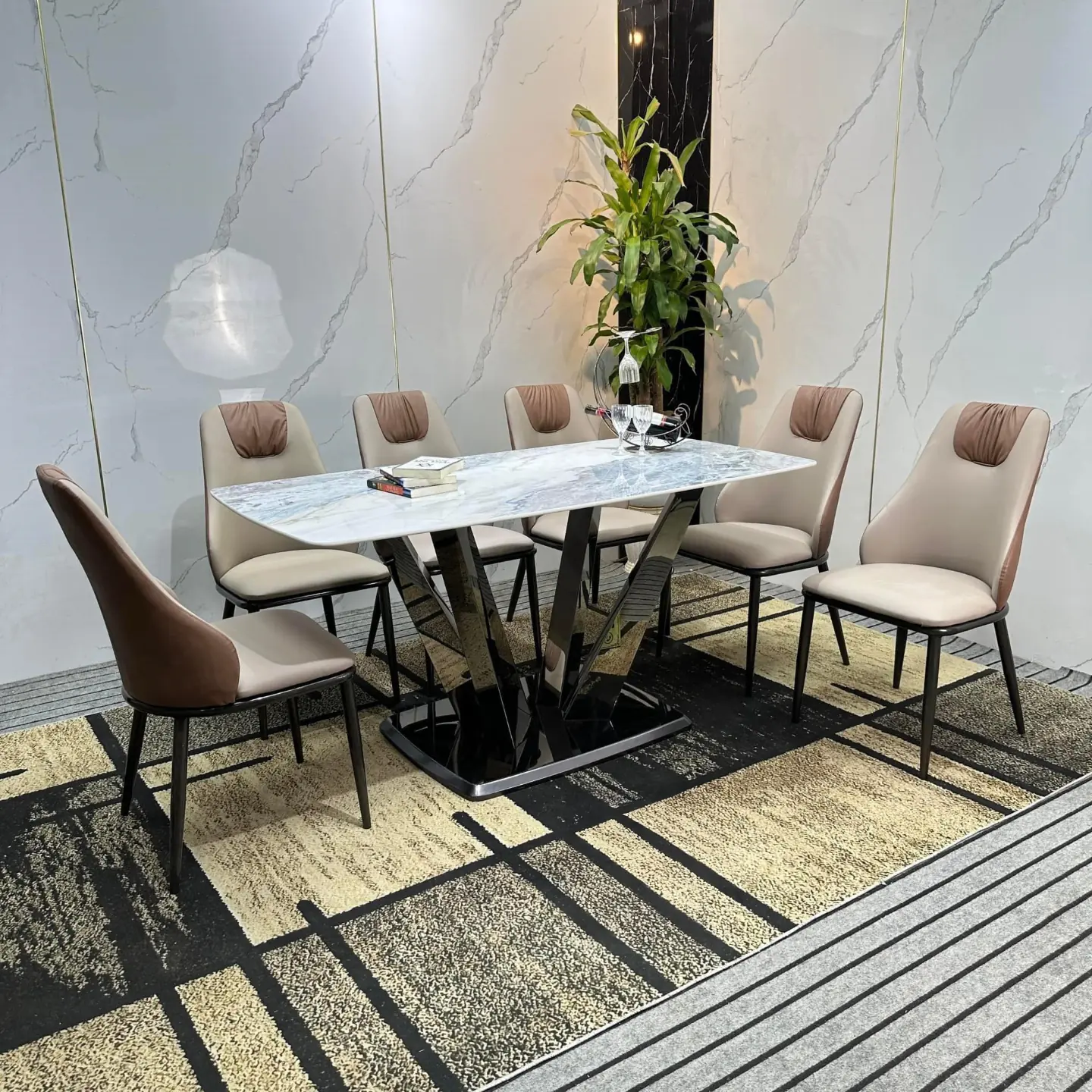Bộ Bàn Ăn Mặt Đá 6 Ghế Ăn Bọc Da Cao Cấp – Sang Trọng & Hiện Đại