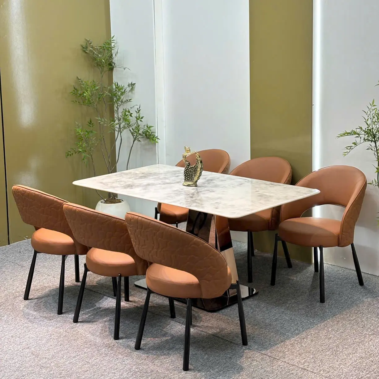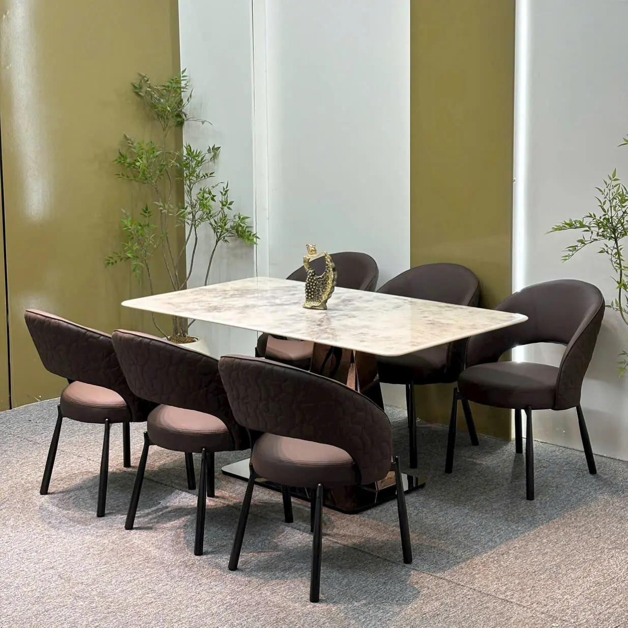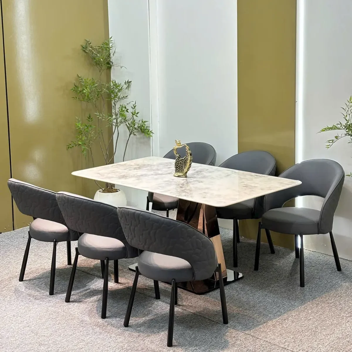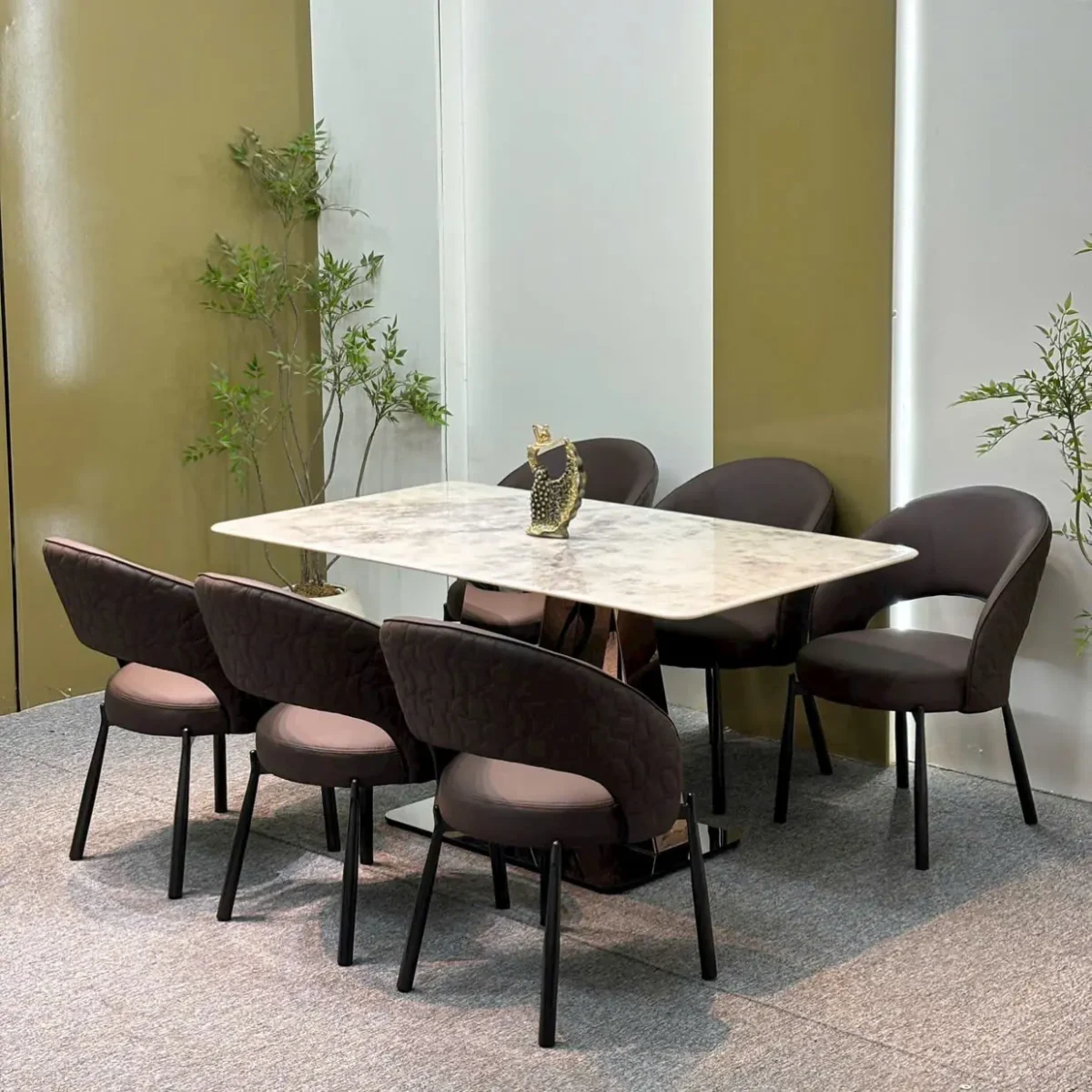 Bộ Bàn Ăn Mặt Đá 6 Ghế Bọc Da Chân Cách Điệu Hiện Đại – Sang Trọng Cho Không Gian Phòng Ăn